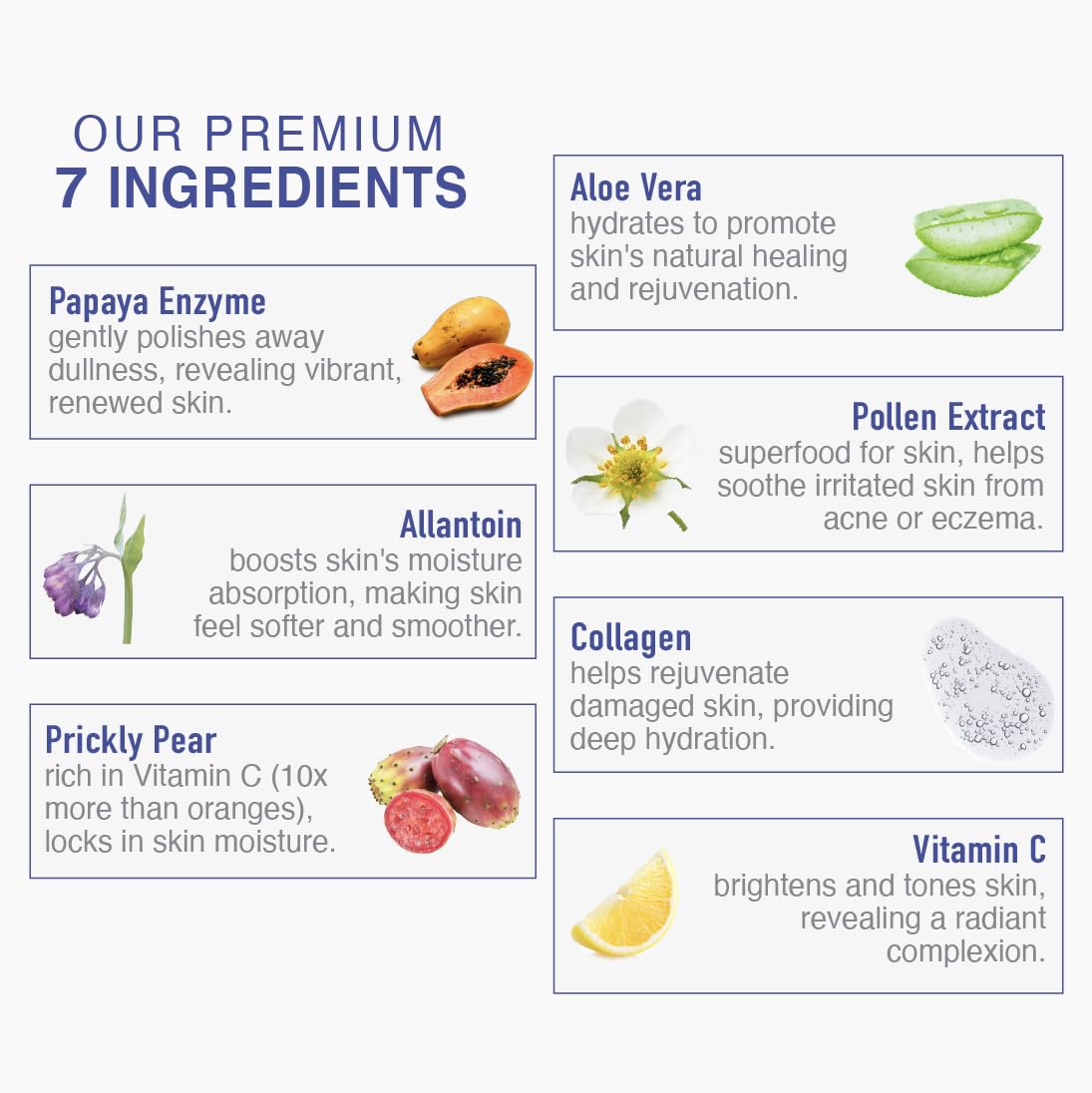 - [EWG GREEN-GRADE NATURAL INGREDIENTS] Crafted with natural premium quality ingredients including Papaya Enzymes, Allantoin, Aloe Vera, Prickly Pear, Vitamin C, and Collagen, our product is harsh chemical free like Phthalates, Parabens, SLS, Mineral oil and Alcohol. Tear-free