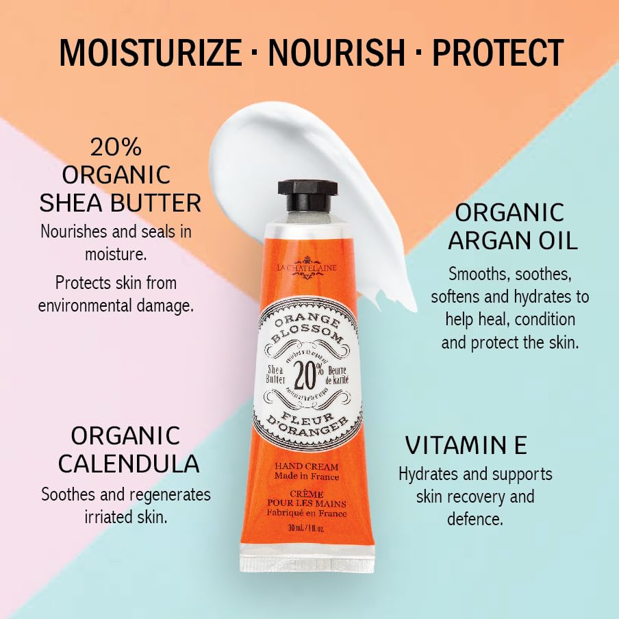 La Chatelaine Hand Cream Trio Tin, Gifts for Mom, Natural Hand Lotion Gift Set, Made in France with 20% Organic Shea Butter, Nourishing & Moisturizing (Gardenia, Orange Blossom, Oud Rose) 3 x 1 fl. oz