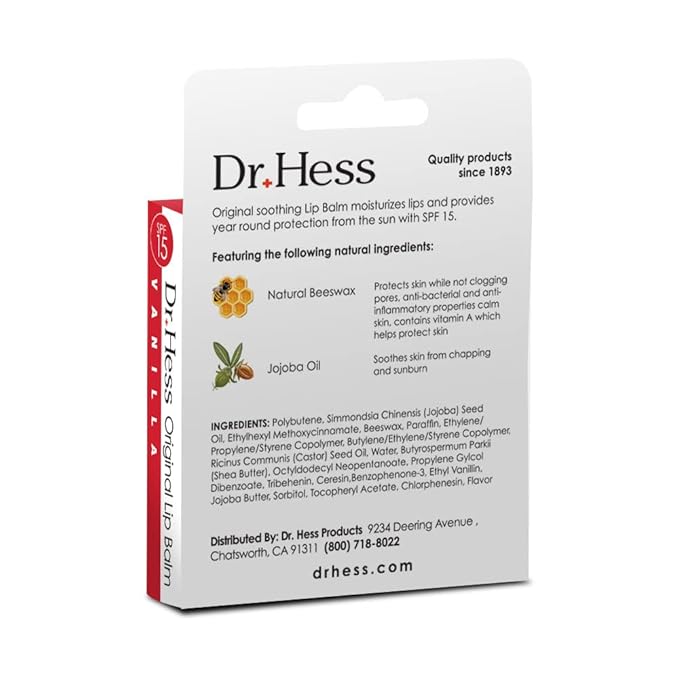 - Immediate Relief for Chapped Lips: Our Udderly Soothing Lip Balm, based on the original Dr. Hess healing formula, is specifically designed to help provide instant relief for dry to severely chapped lips; Enriched with Jojoba, Beeswax, and Shea Butter, and Paraffin, it effectively moisturizes and nourishes your lips, leaving them smooth and protected