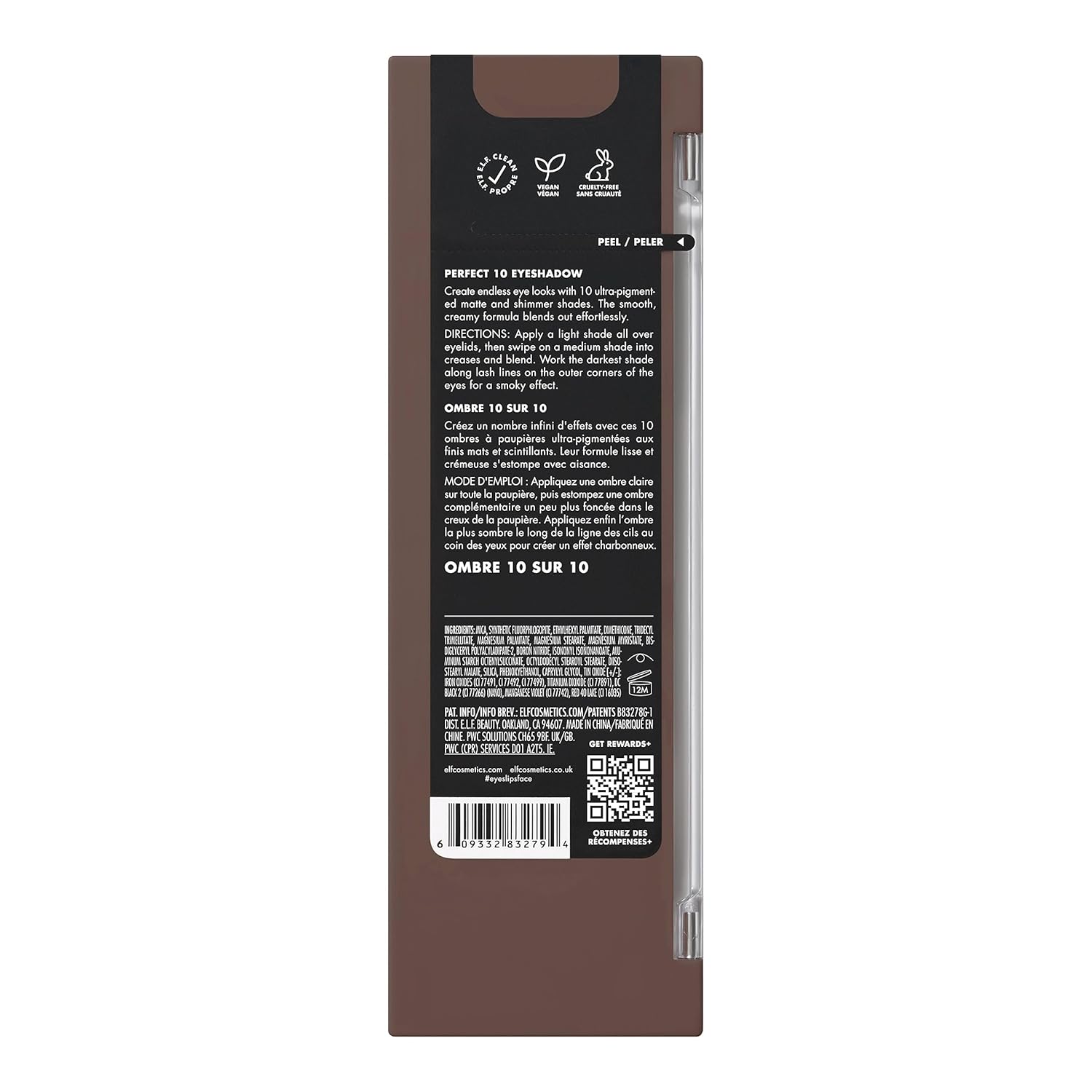 e.l.f. Perfect 10 Eyeshadow Palette, Ten Ultra-pigmented Nude Shades, Blendable Formula, Vegan & Cruelty-free, Everyday Smoky (Packaging May Vary)