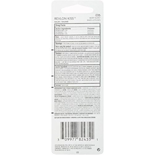 Revlon Lip Balm, Kiss Tinted Lip Balm, Face Makeup with Lasting Hydration, SPF 20, Infused with Natural Fruit Oils, 035 Berry Burst, 0.09 Oz