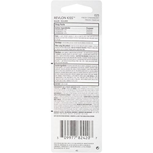 Revlon Lip Balm, Kiss Tinted Lip Balm, Face Makeup with Lasting Hydration, SPF 20, Infused with Natural Fruit Oils, 025 Fresh Strawberry, 0.09 Oz