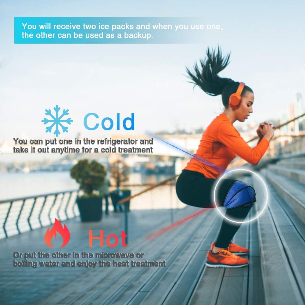 - 【Reusable Hot Cold Compress】 - Heat gel knee pack in the microwave or boiled water for hot therapy to help relax sore muscles and promote blood flow or chilled in a freezer for cold therapy to help reduce swelling and blood flow while promoting healing.