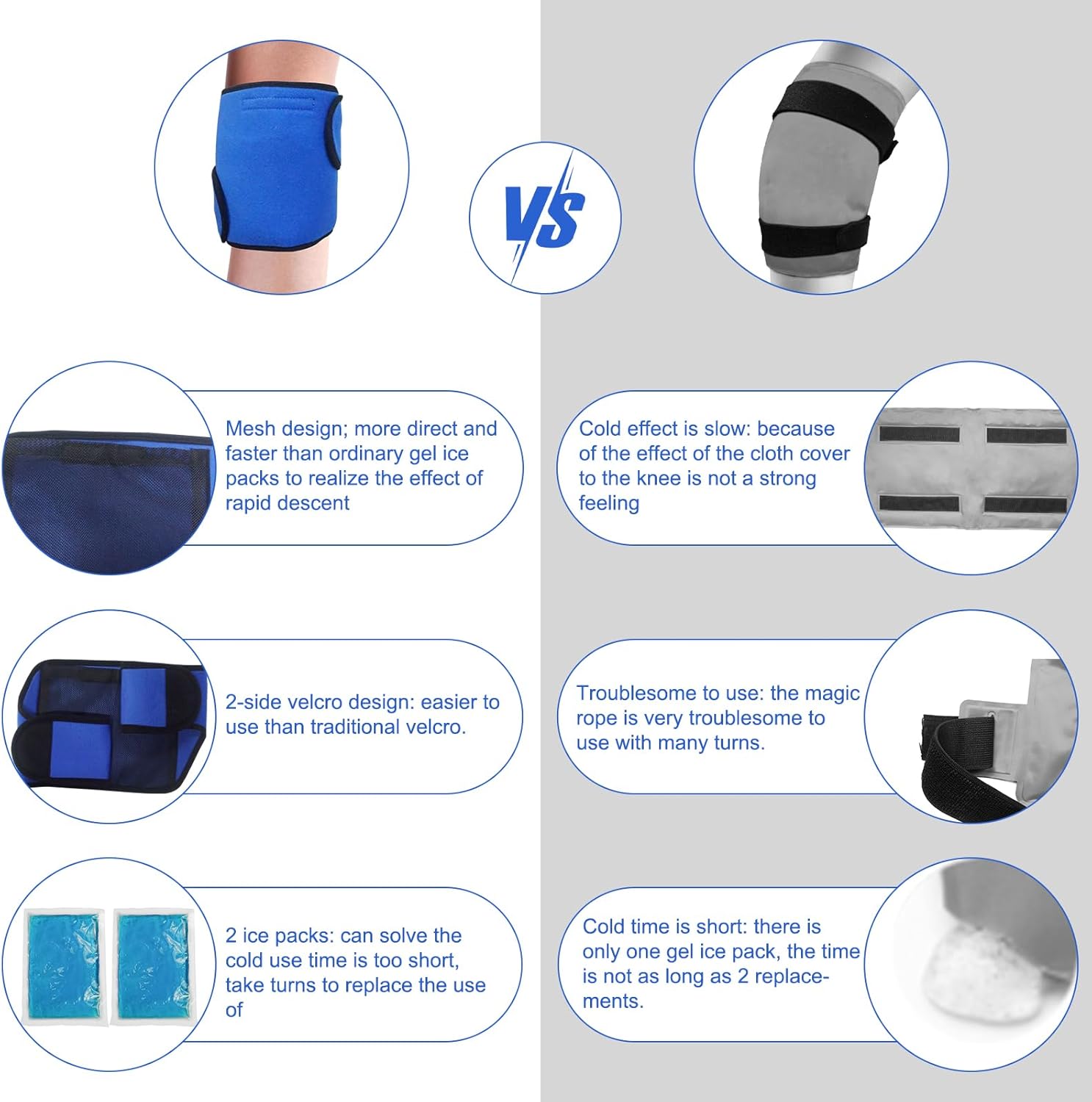 - 【Effective Pain Relief】 - Ice knee pad stays cold or hot for doctor recommended therapy time of 20 minutes, effect to relax your joints after work outs, target pain relief for knee sports injuries, inflammation, sprains, bursitis, ligament injury, meniscus tear, etc. For maximum cooling power, freeze the ice pack for more than 6 hours before using.