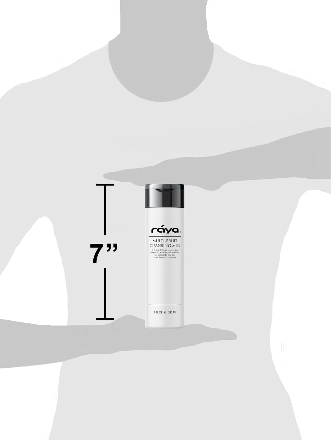 Raya Multi-Fruit Facial Cleansing Milk with AHA and BHA 8 oz (G-154) | Exfoliating Soap-Free Cleanser and Make-Up Remover for Dry and Combo Skin | Made with Multi-Fruit Alpha and Beta Hydroxy Acids