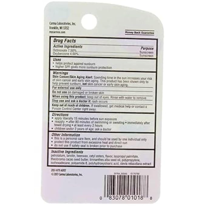 - SPF 15 Sunscreen Water Resistant (80 Minutes)
