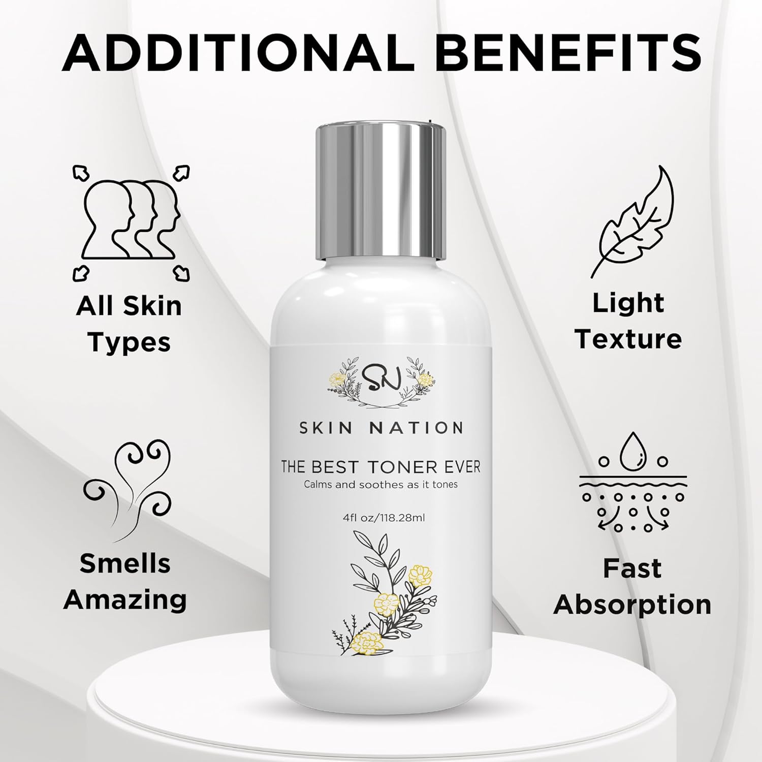 Skin Nation Hydrating Gentle Rosewater Toner with Aloe Vera and Chamomile, Alcohol-Free and Paraben-Free, for Dry, Sensitive, Oily and Combination Skin, 4 fl oz