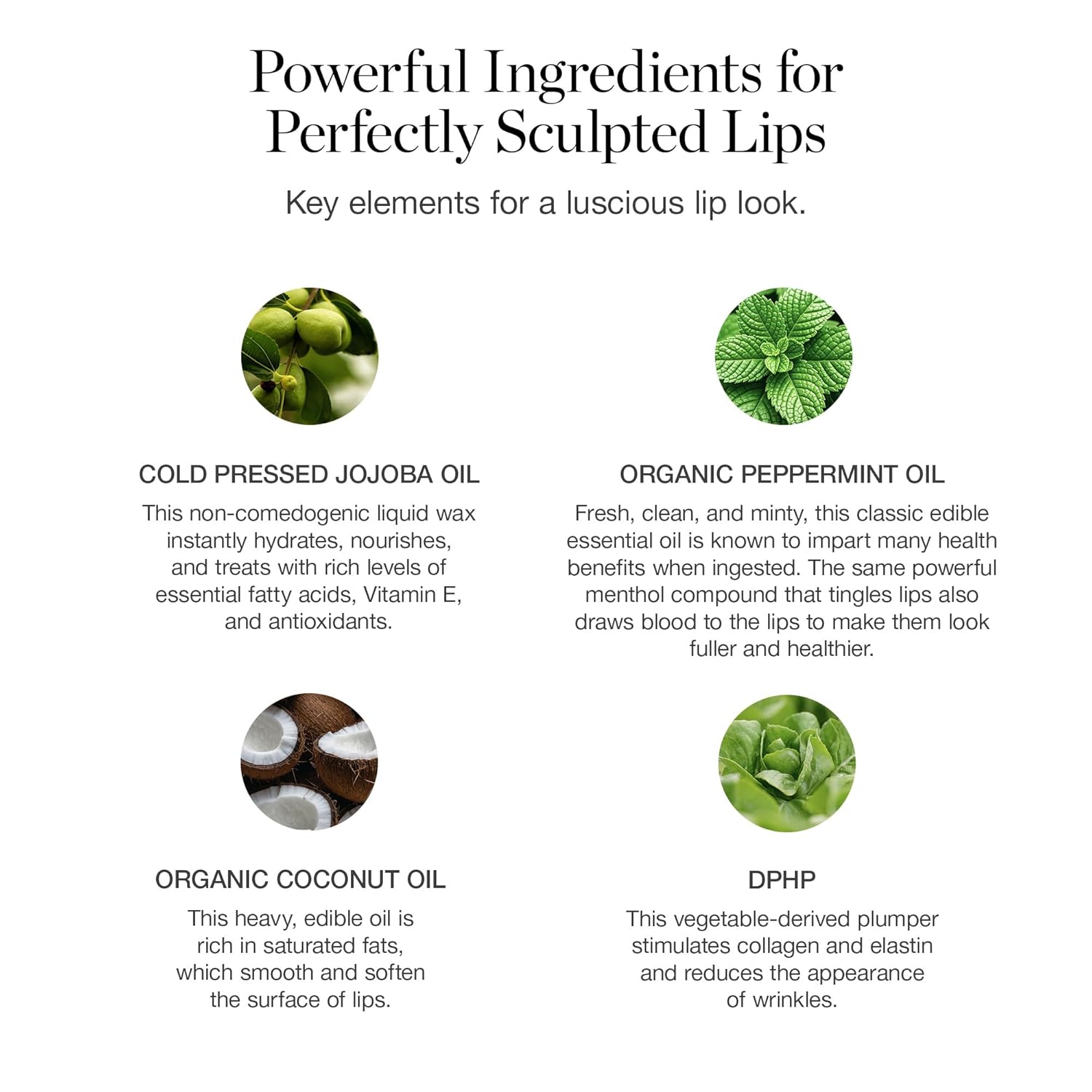 - PLUMP & PERFECT: A pout-perfecting tinted lip balm enhanced with hydrating hyaluronic acid & refreshing Peppermint essential oil to soothe.