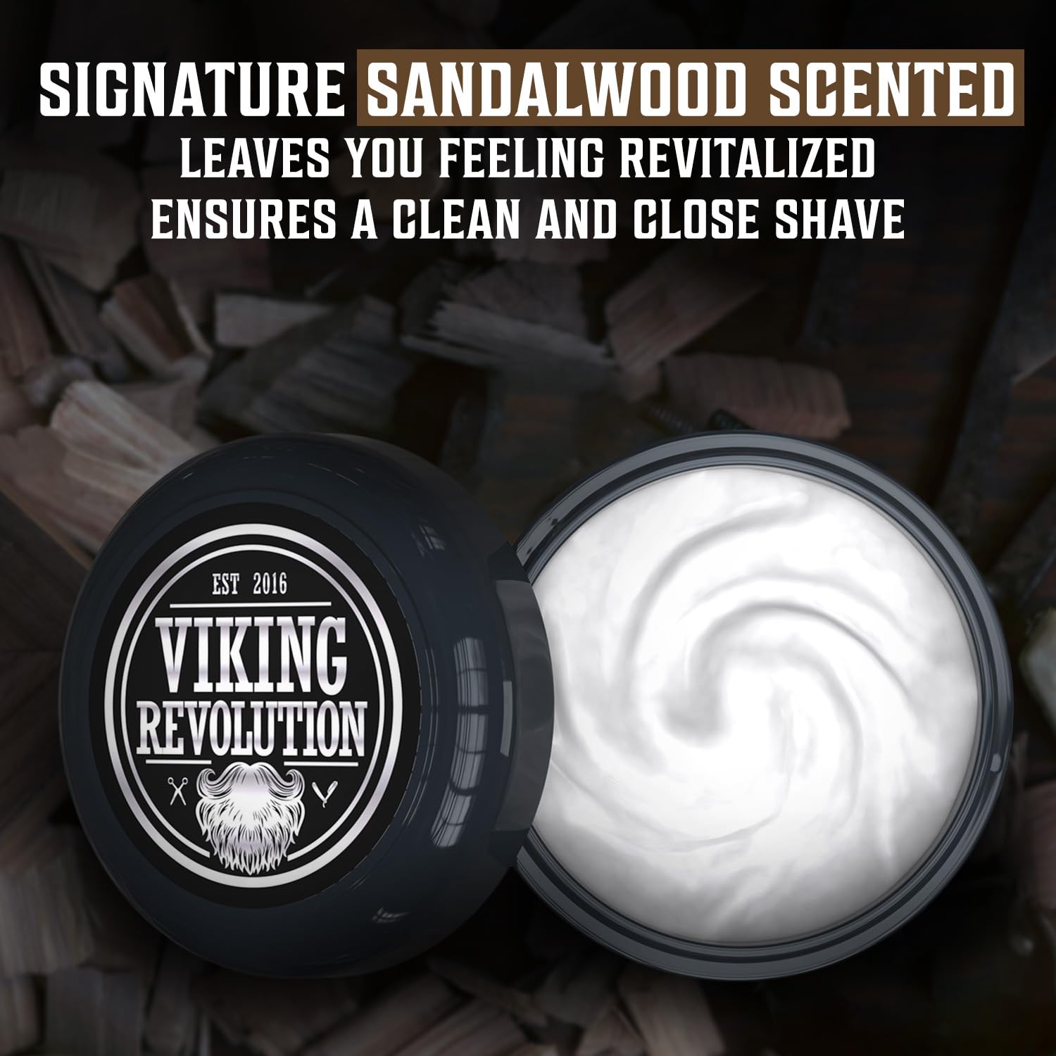 Viking Revolution Luxury Shaving Cream for Men- Sandalwood Scent - Soft, Smooth & Silky Shaving Soap - Rich Lather for the Smoothest Shave - 5.3oz