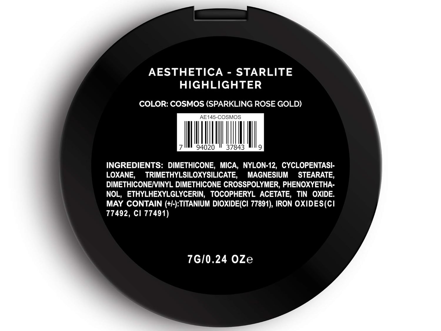 Aesthetica Starlite Highlighter - Metallic Shimmer Highlighting Makeup Powder - Cosmos (Sparkling Rose Gold)