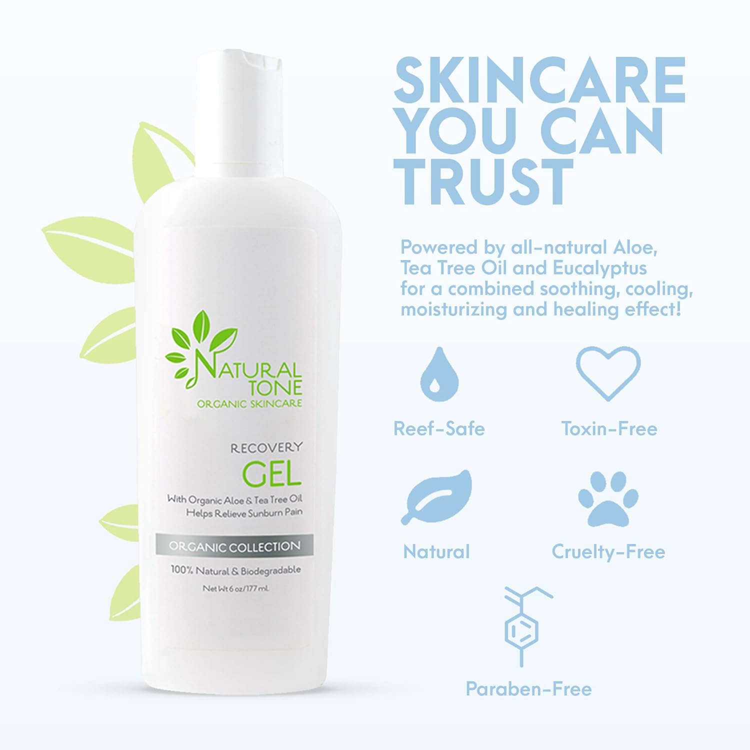 - SKINCARE YOU CAN TRUST - This aloe vera sunburn relief gel is gentle on all skin types and safe for the planet. It does not contain any parabens, sulfates, or silicone. It is vegan, cruelty-free, reef-safe, and toxin-free, too.