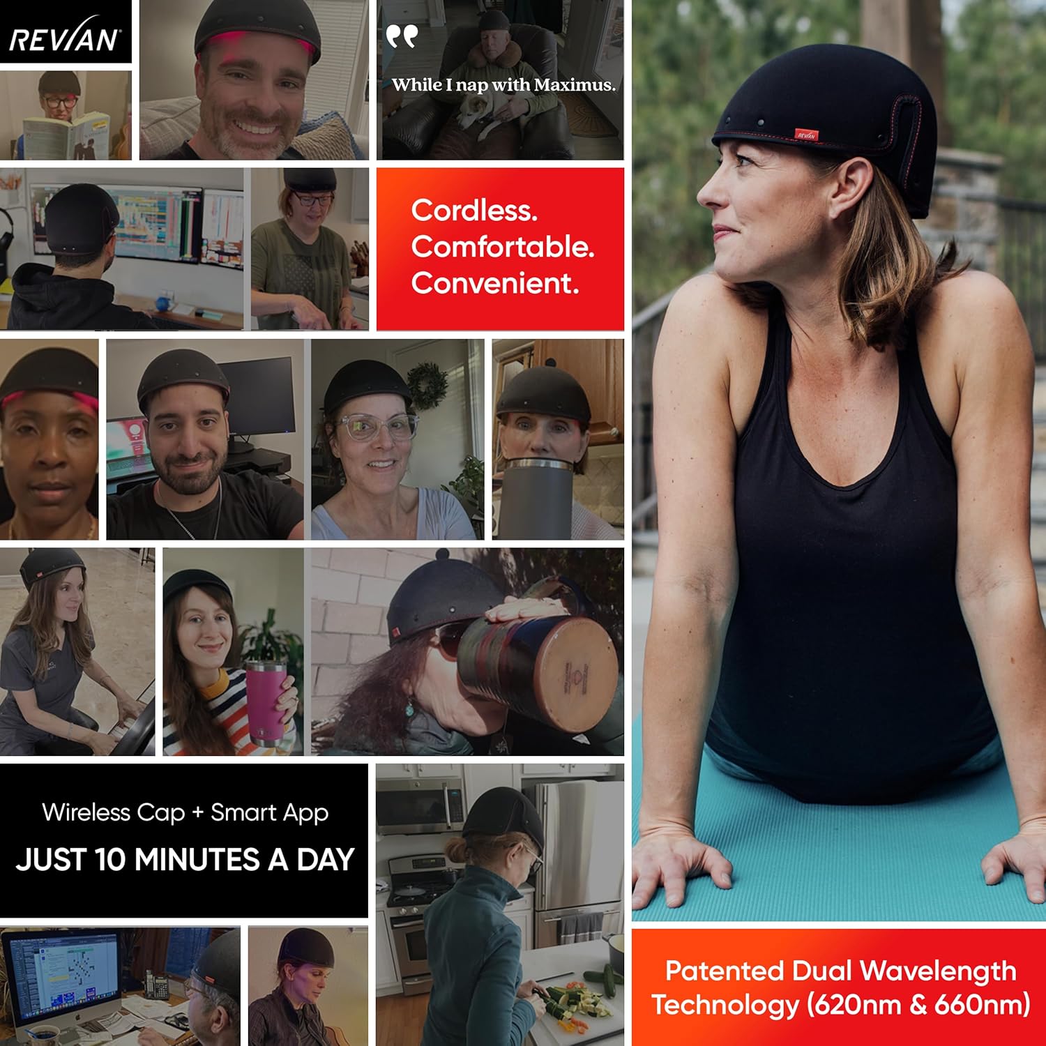 - HANDS FREE DESIGN: Designed for comfort and convenience without interrupting your daily routine. Cordless and lightweight, REVIAN Red’s cutting-edge technology takes a proactive step towards fuller, healthier hair. Our flexible, full-coverage cap effectively targeting hair loss at the crown, hairline, and donor area for hands-free treatment