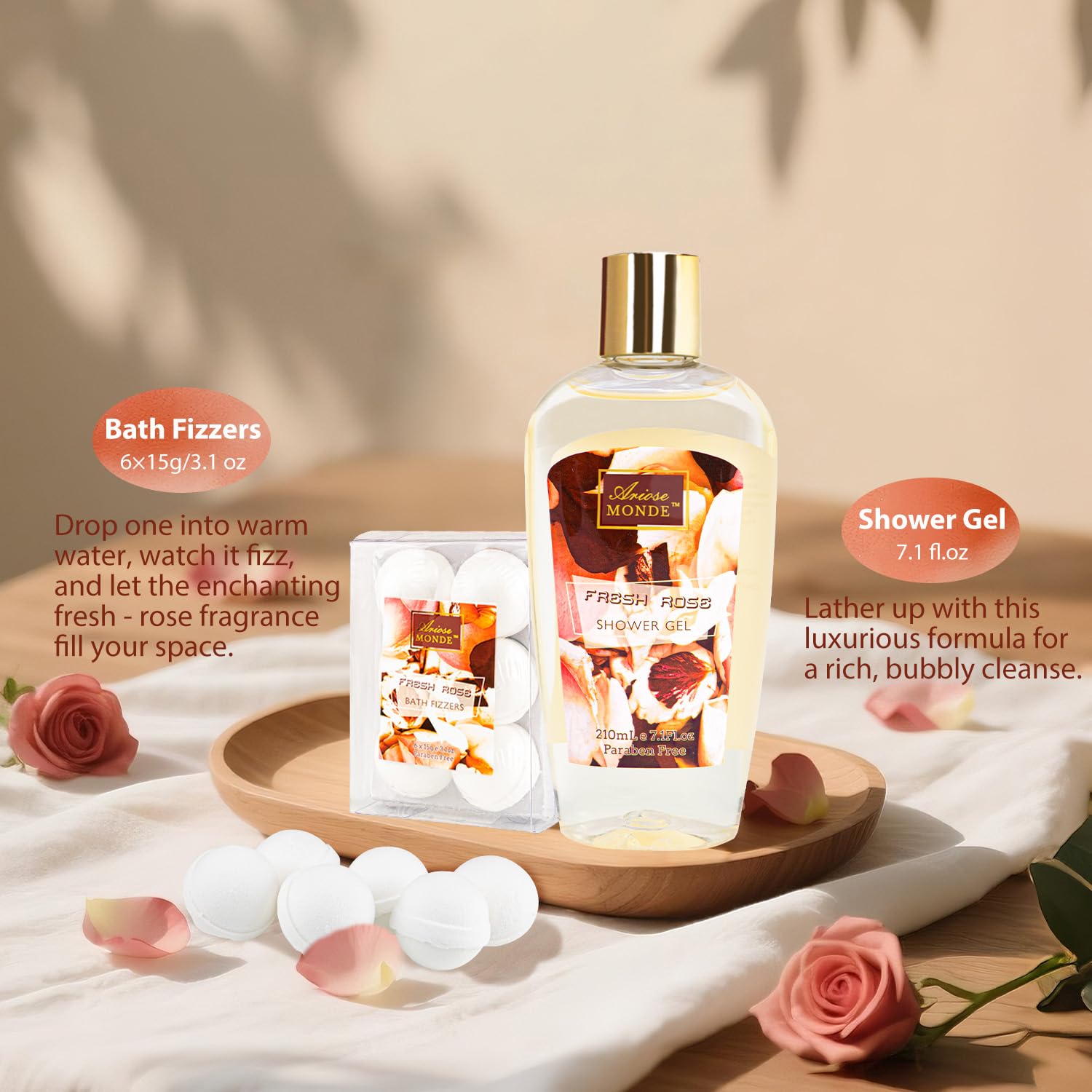Fresh Rose Spa Gift Set for Women, 8-Piece Relaxing Bath Set with Shower Gel, Bubble Bath, Body Lotion, Self Care Gift for Any Occasion, Birthday Gifts for Women, Spa Kit for Mom Gifts