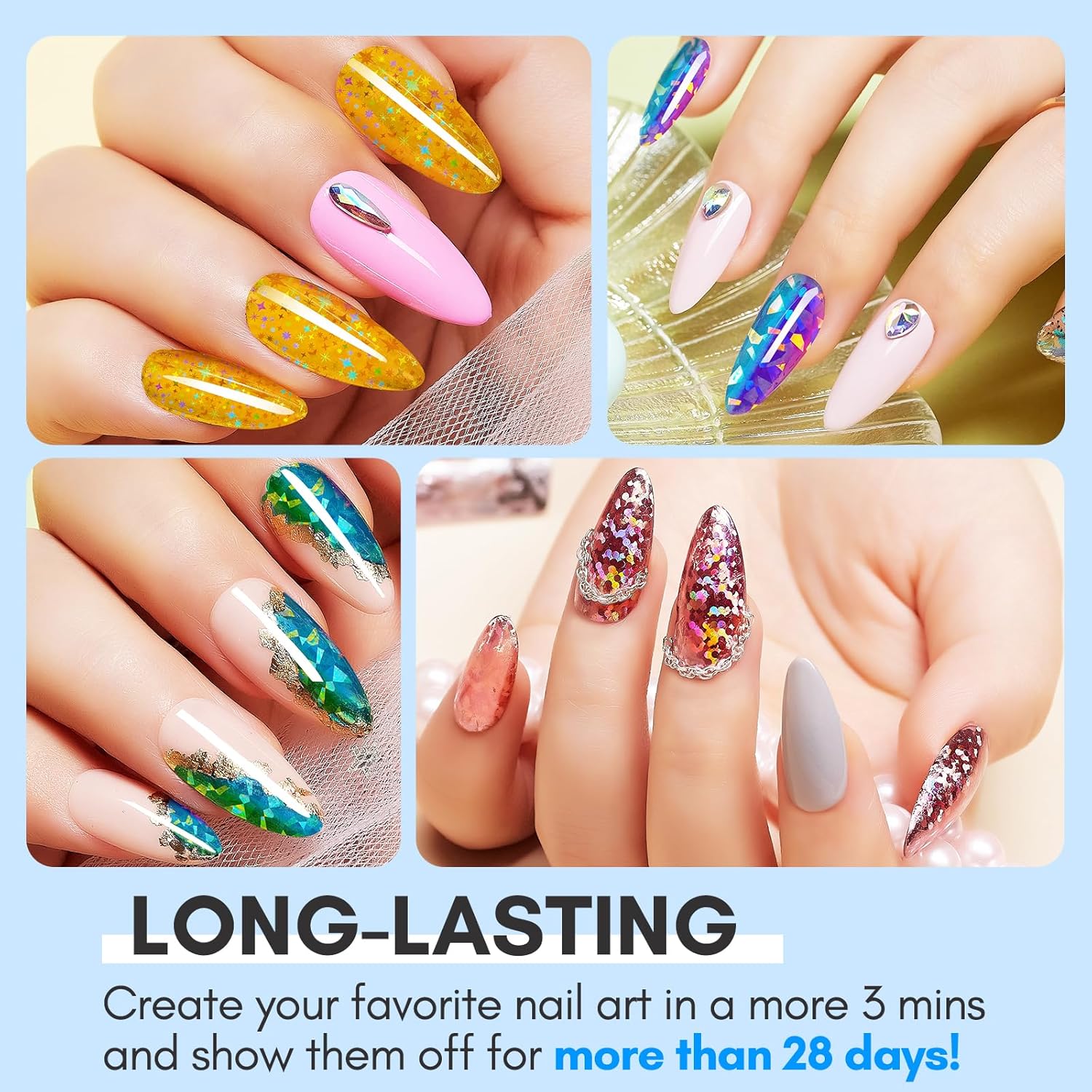 - Long Lasting& Full Size Package: 15ML each bottle. Larger capacity can use many times. But foil stickers are NOT included in this product! With proper application of foil nail glue, it can last about 3-6 weeks without chipping!