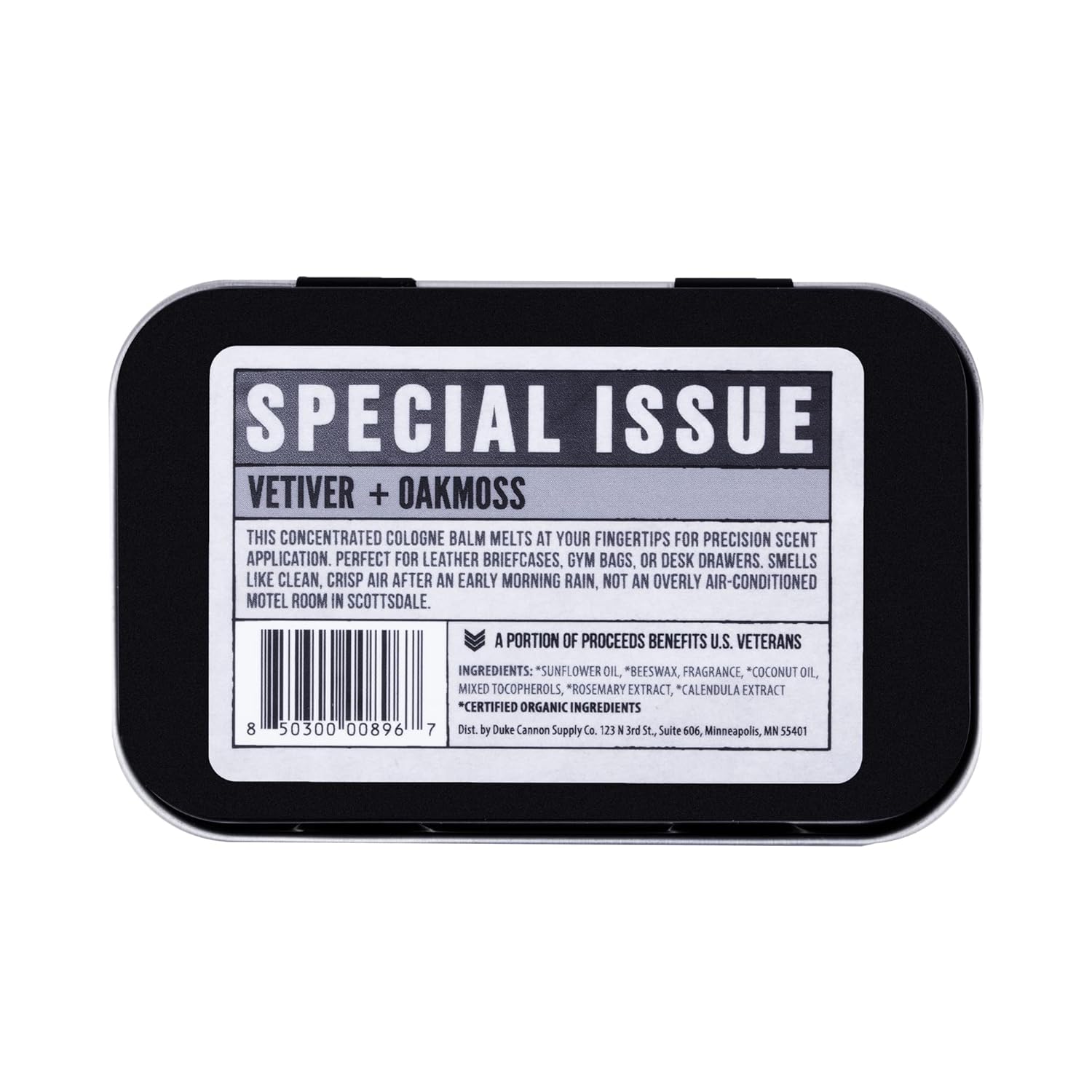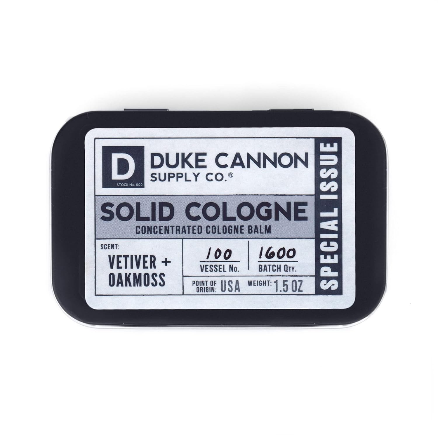 Duke Cannon Supply Co. Solid Cologne for Men Special Issue Vetiver and Oakmoss (Fresh Air, Sandalwood) - Concentrated Balm, Travel-Friendly Tin, 1.5 oz