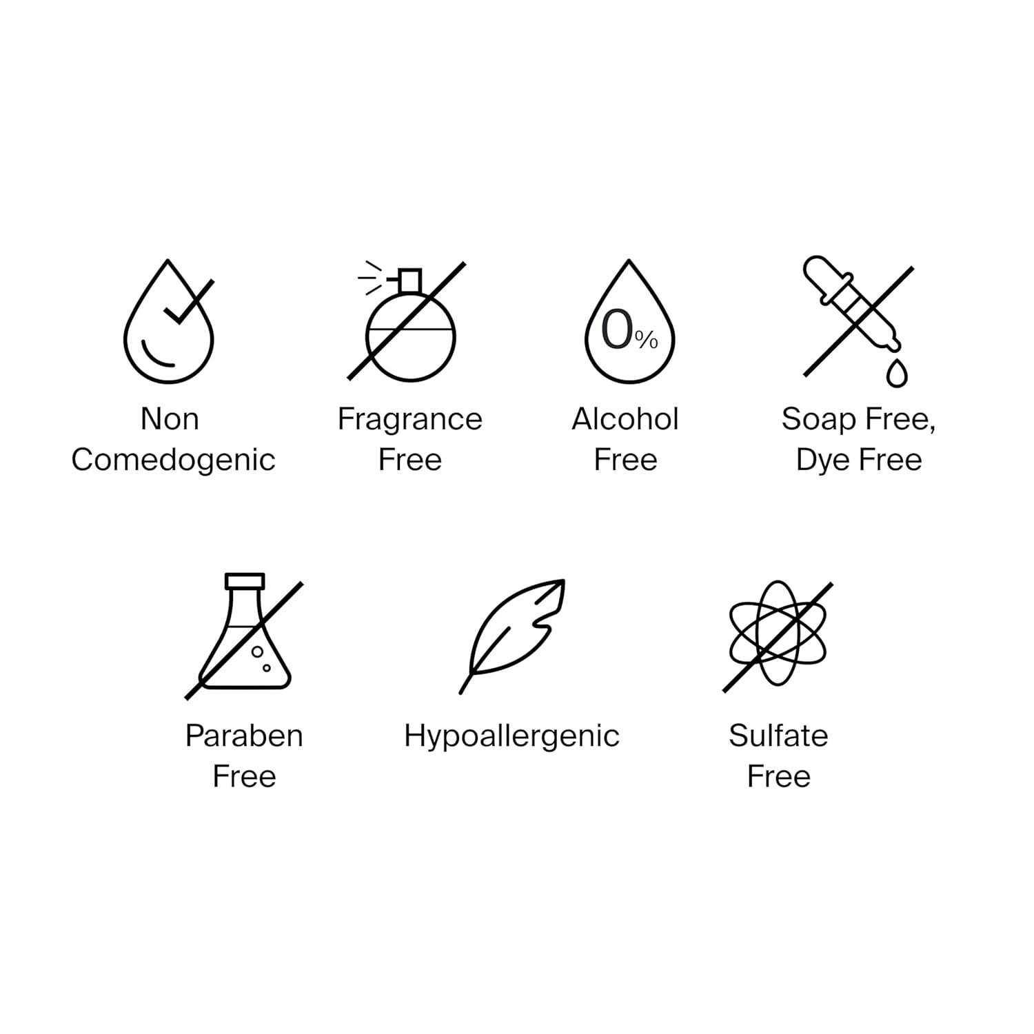 - The hypoallergenic facial cleanser is free of fragrance, soaps, parabens, sulfates, alcohols, and dyes and is gentle enough for sensitive skin. The daily foaming cleanser is non-comedogenic, so it rinses clean and won't clog your pores