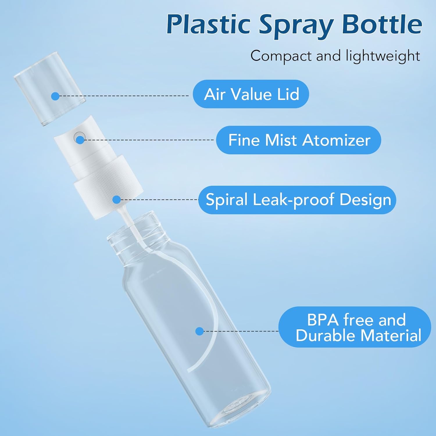 - 【Healthy and safe material】- The mini spray bottles are made of high quality plastic, BPA free, durable, refillable and reusable, tasteless and non-toxic, TSA approved travel bottles, you can take them everywhere