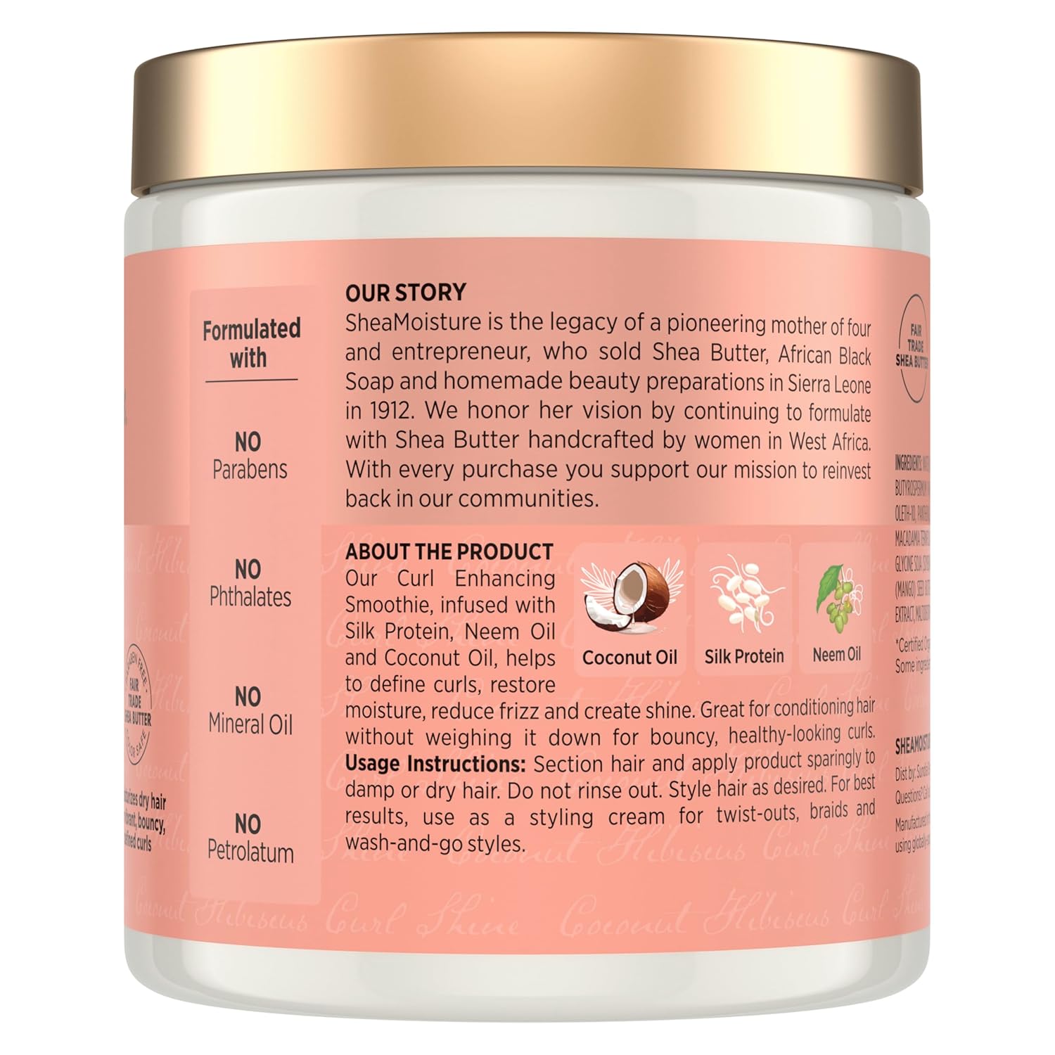 - SheaMoisture hair cream and styling cream is formulated with no silicone, no sulfates, no parabens, no phthalates, no mineral oil or petrolatum