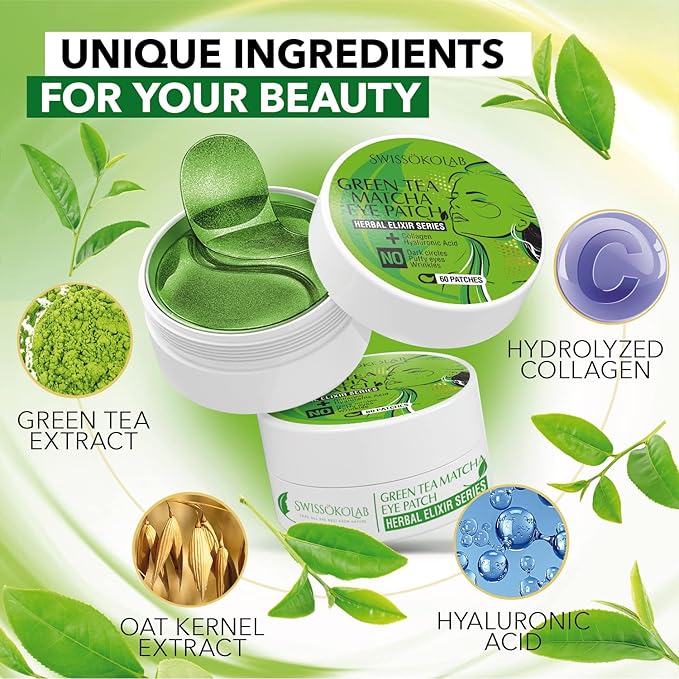 SWISSÖKOLAB Under Eye Patches For Puffy Eyes 24k Gold Eye Mask Dark Circles And Puffiness Collagen Eye Gel Pads Moisturizing & Reducing Wrinkles Anti-Aging Hyaluronic Acid (Green Tea)
