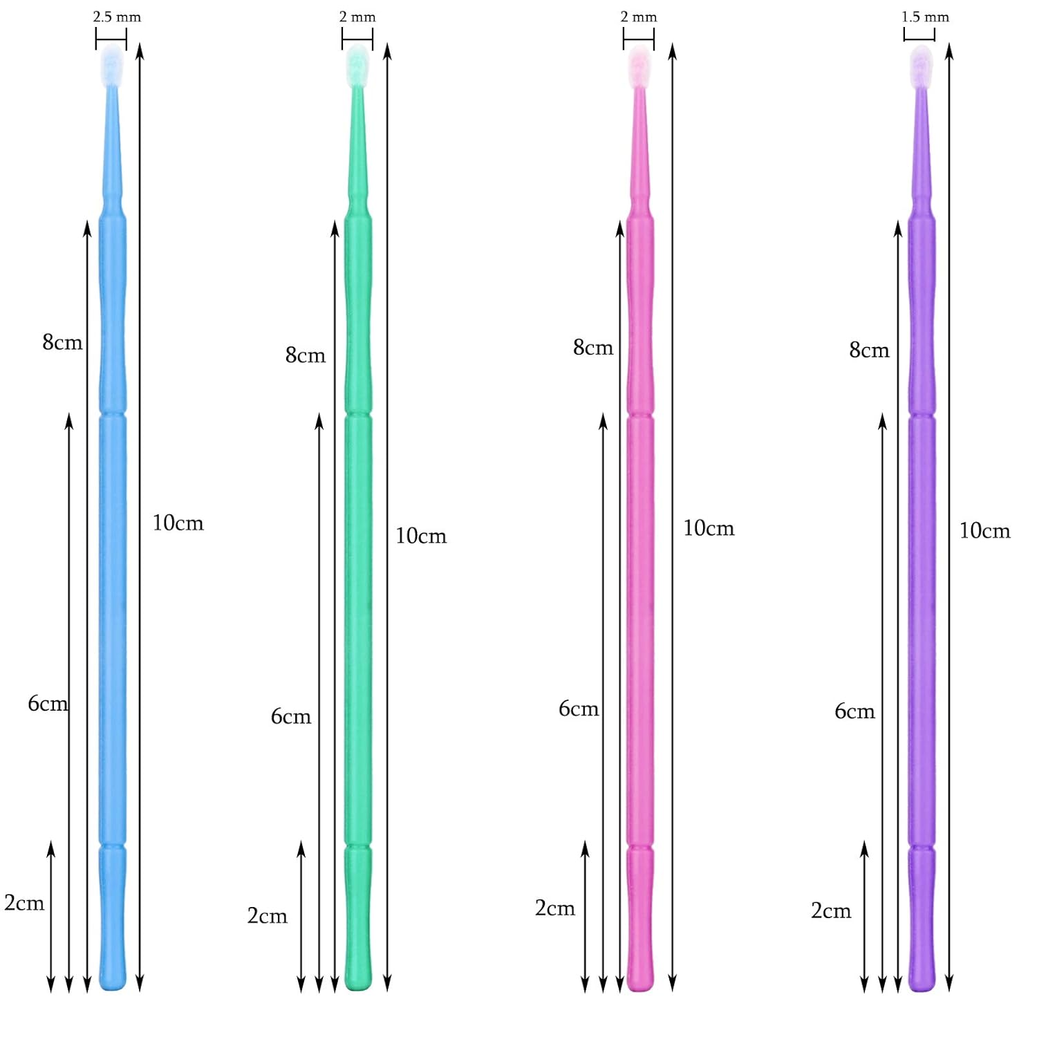 - Microfiber Tips And Plastic Handle; Length:10cm / 3.9”,Head Diameter: 2.5mm/Large Size(Dark Blue); Package Includes 500pcs Micro Brushes, And Every 100pcs In A Clear Plastic Bags Which Keeps Them Clean And Tidy.