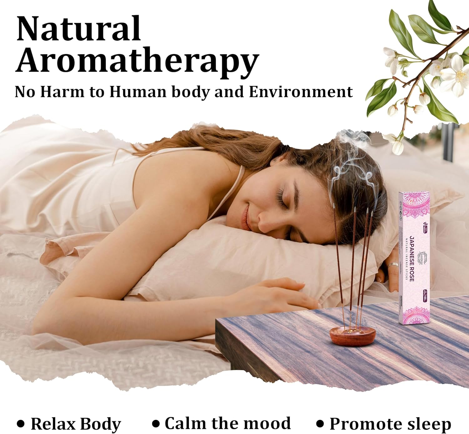 Raajsee Japanese Rose Incense Sticks (180 gm), 100% Pure Organic Natural Hand Rolled Free from Chemicals- Perfect for Aromatherapy, Cleansing, Meditation, and Church (Pack of 12)