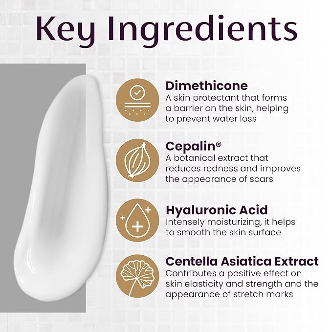 - INTENSIVE CREAM FORMULA: With Cepalin botanical extract, Hyaluronic Acid and Centella asiatica extract to moisturize, nourish the skin and visibly reduce stretch marks