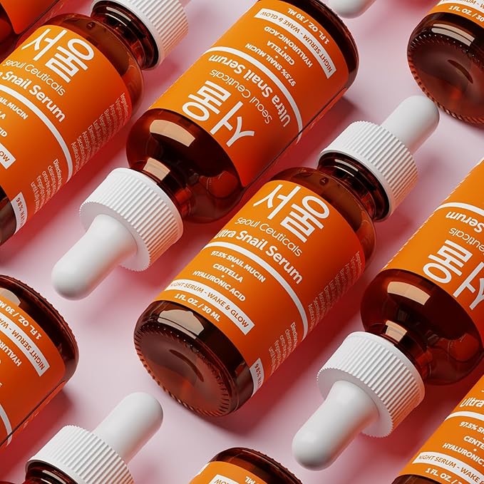 SeoulCeuticals Korean Skin Care 97.5% Snail Mucin Serum – K Beauty Skincare Night Serum Hyaluronic Acid for Face - Centella Anti Wrinkle Serum 1oz