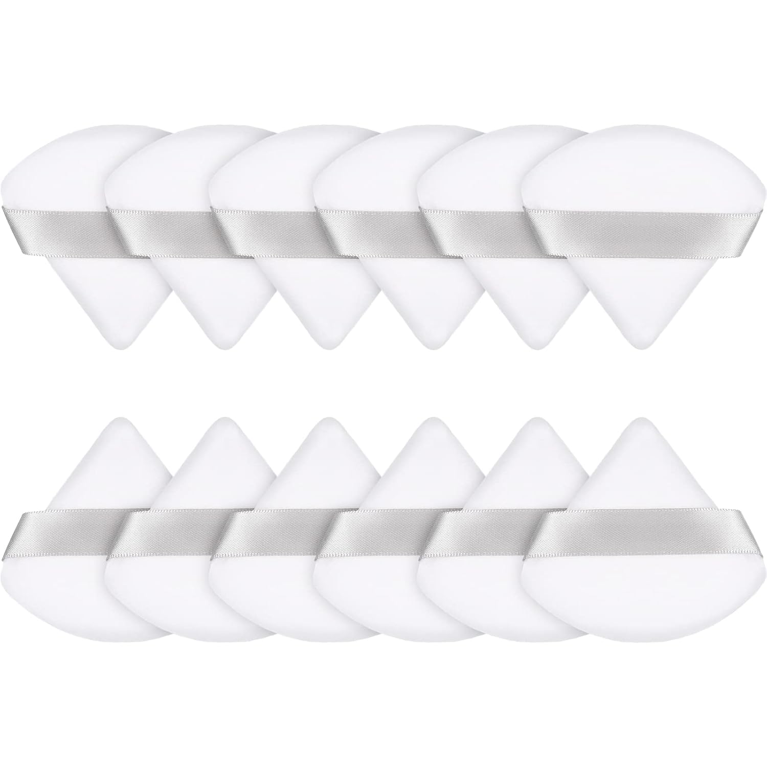 Maitys 12 Pieces Powder Puff Triangle Face Makeup Cosmetic for Loose Powder Soft Body Washable Reusable Foundation Sponge Mineral Wet Dry Makeup Tool for Women(Small,White)