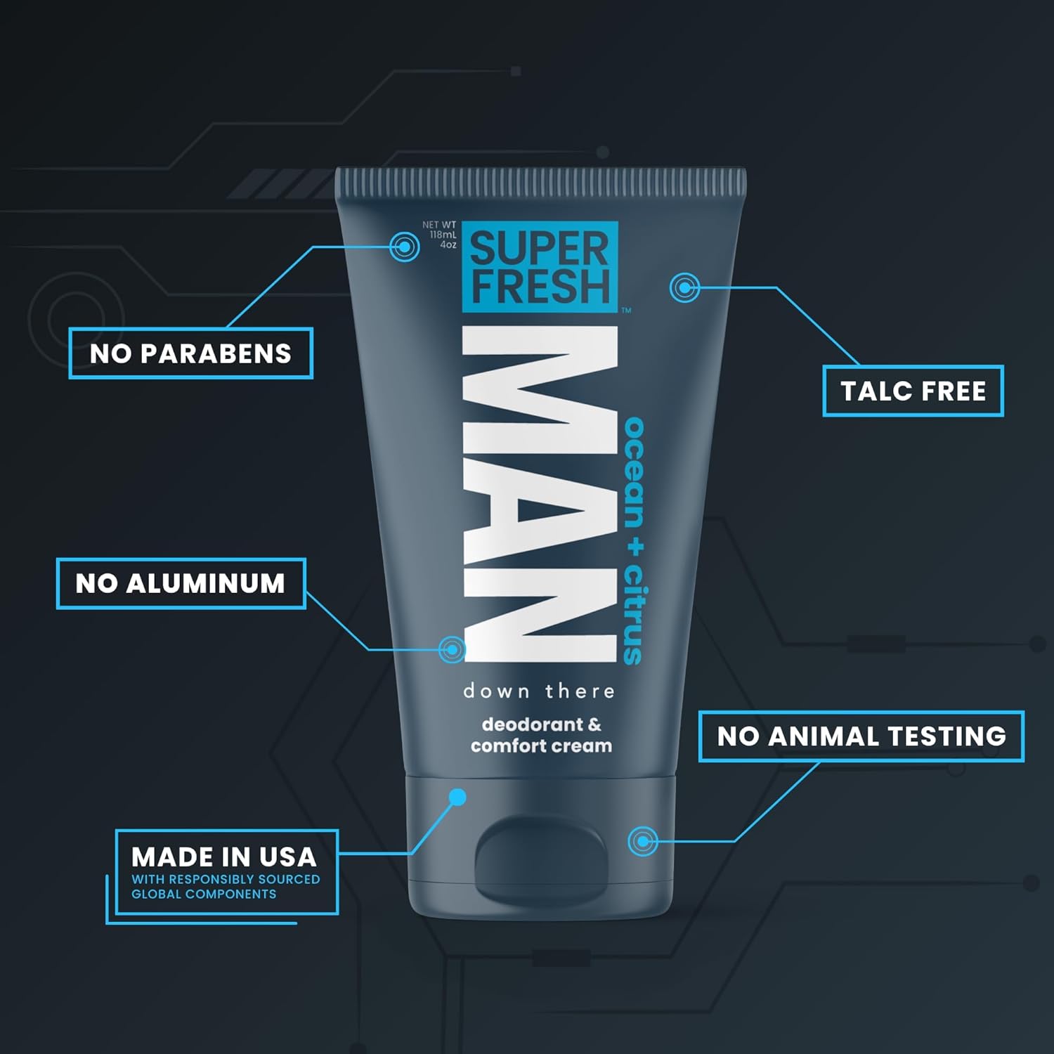 - FRESHNESS WHERE IT COUNTS EVERY DAY: Designed specifically for male hygiene needs, this lotion targets problem areas like the groin, inner thighs, backside, and even feet. Whether you’re suiting up for work, gearing up for sports, or heading outdoors, Super Fresh Man Parts provides reliable freshness and dryness. Proudly formulated, filled, and sealed in the USA to ensure premium quality in every tube.