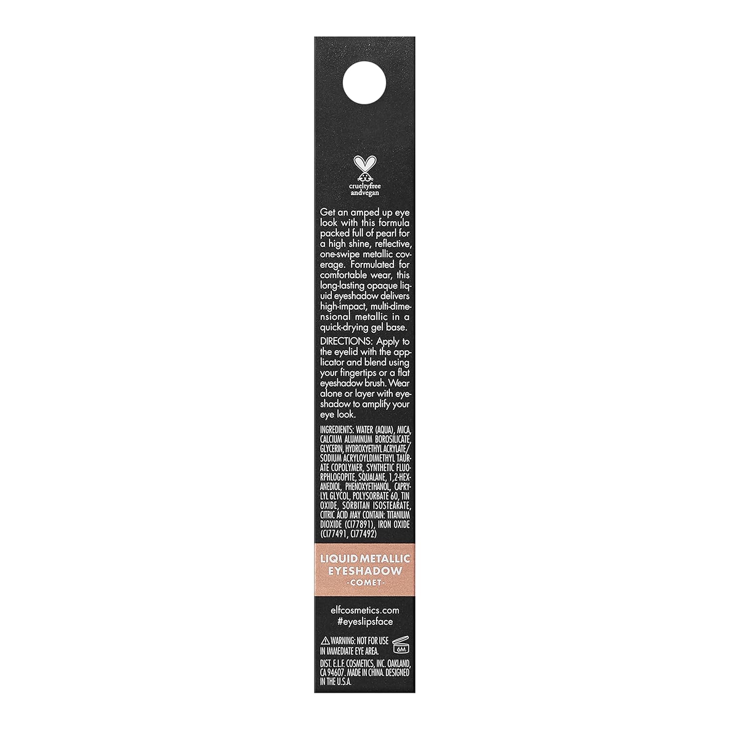 - AMPED UP EYE LOOK: Get an amped up eye look with e.l.f. Liquid Metallic Eyeshadow! This liquid eyeshadow delivers a high-impact, metallic finish through multi-dimensional metallic pearls. The shade Comet is rose gold with cool silver shimmer.