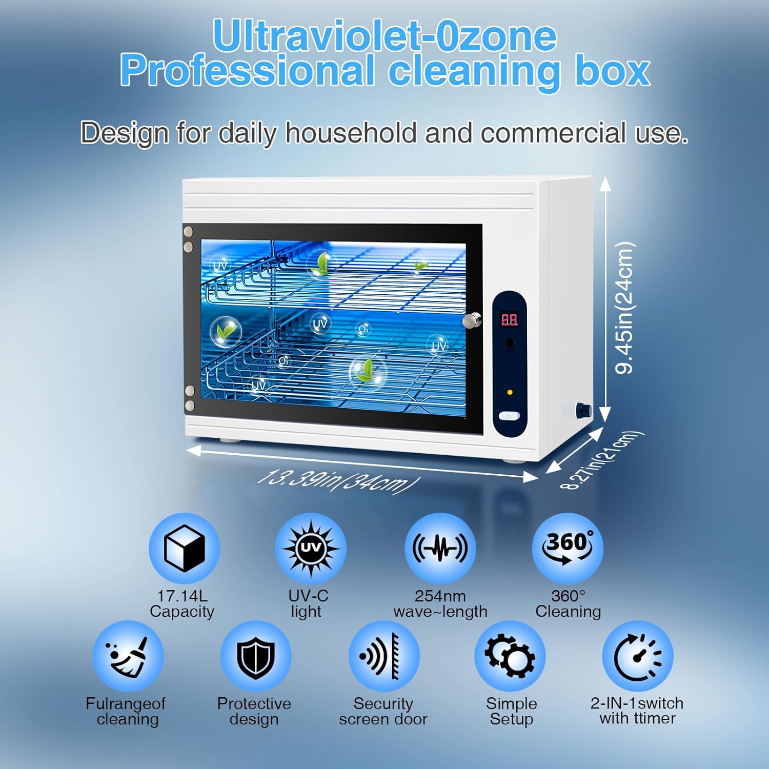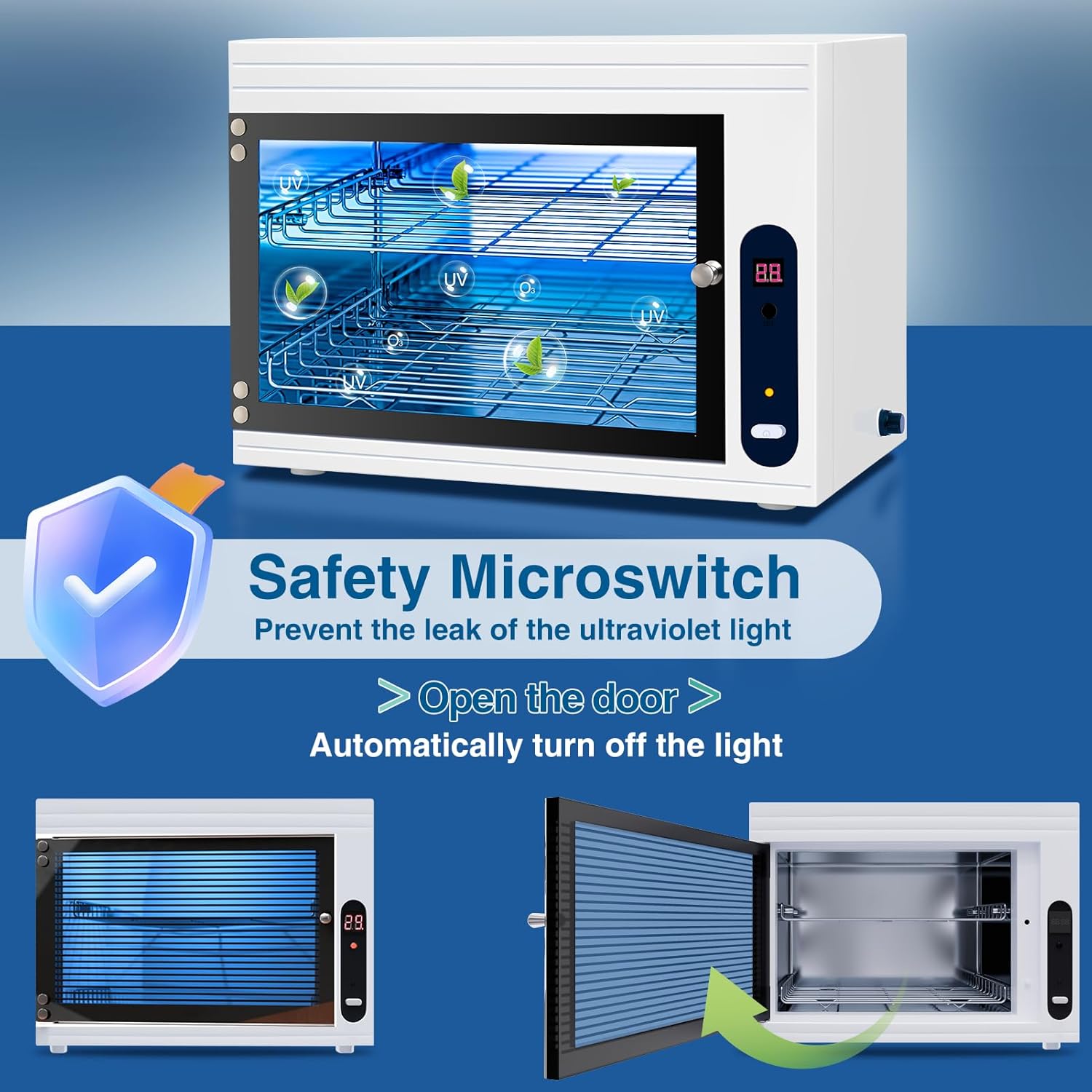 - [Safe and Convenient] The UV light features a powerful magnetic door, a high-brightness stainless steel container, and a metal shelf. When the door is opened, the light automatically turns off, and it turns back on when the door is closed.