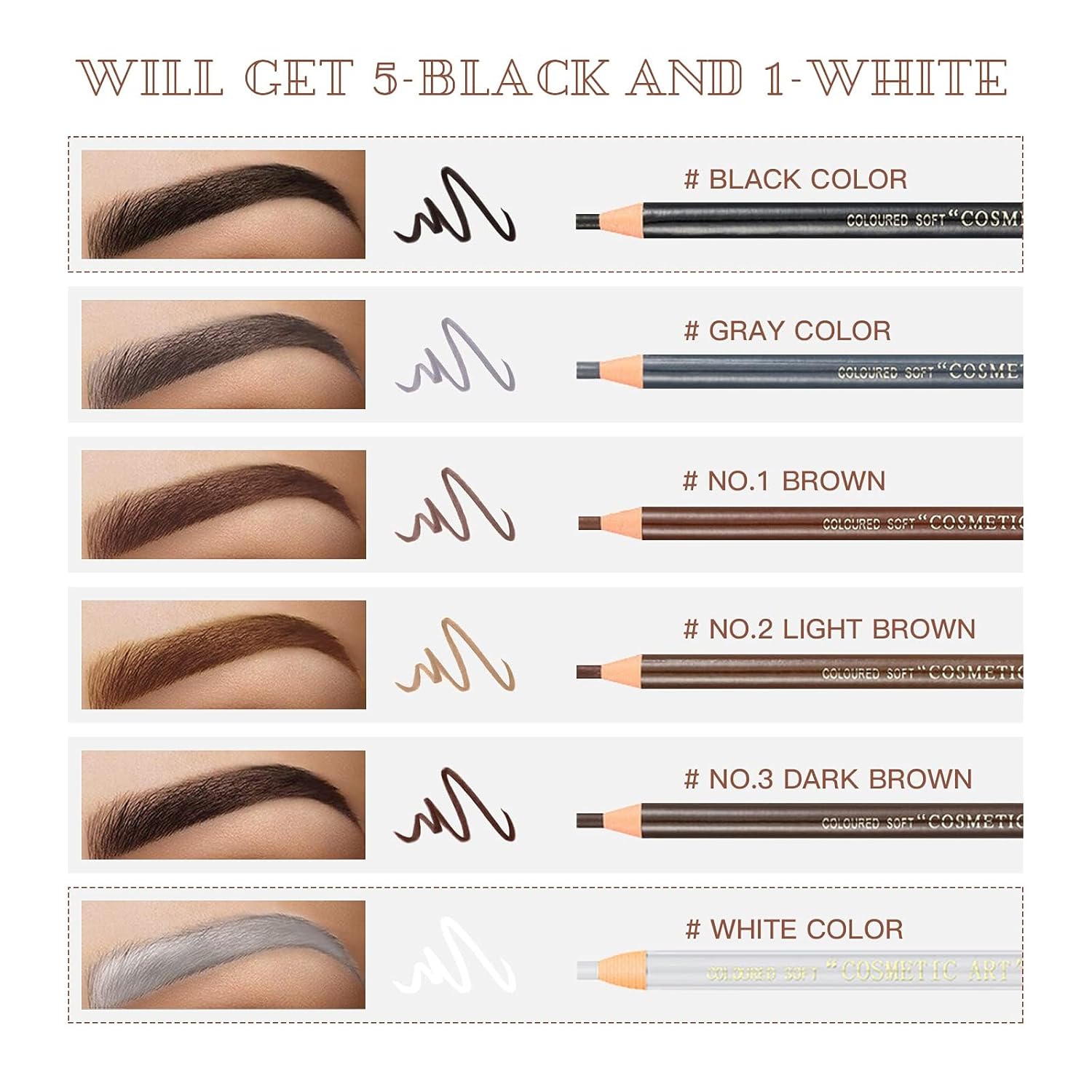 Waterproof Eye-Brows Pen-cil Set, Pull Cord Peel-off Eyebrow Pencil Microblading Eyebrow Pen Supplies Kit, White Eye-Liner Pencil and Eyebrows Tool Tattoo Makeup For Marking (5+1 Black)