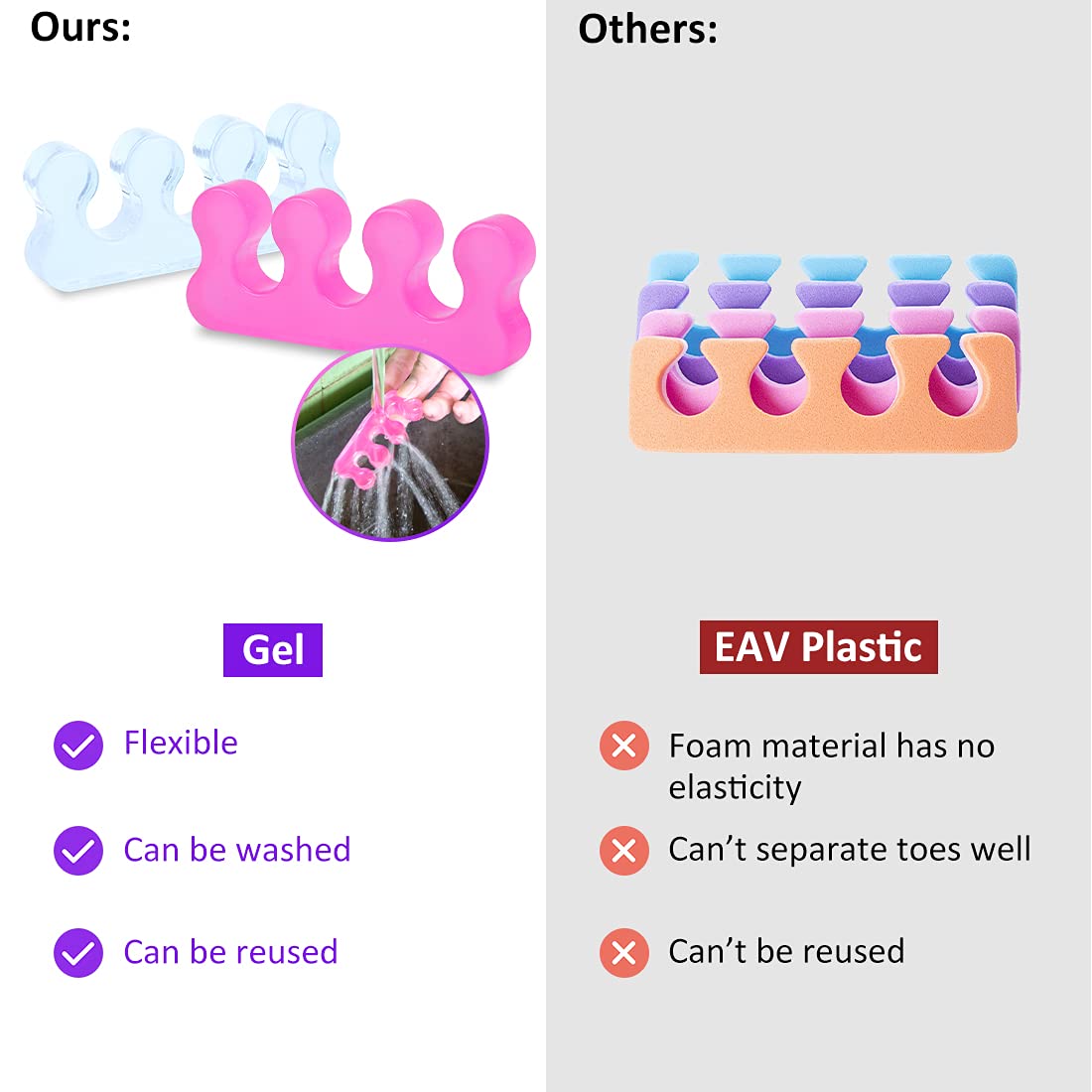 - 🌹【Reusable, easy to clean】Toe Separators for Pedicurecan be cleaned repeatedly,and jelly material that can be used multiple timesis not easy to deform.Upgraded version of Foam pedicure toe separator.Rinse once with water before use.【Service】We love our customers,If you are troubled by product problems,please contact us as soon as possible to solve it for you,including return or exchange.