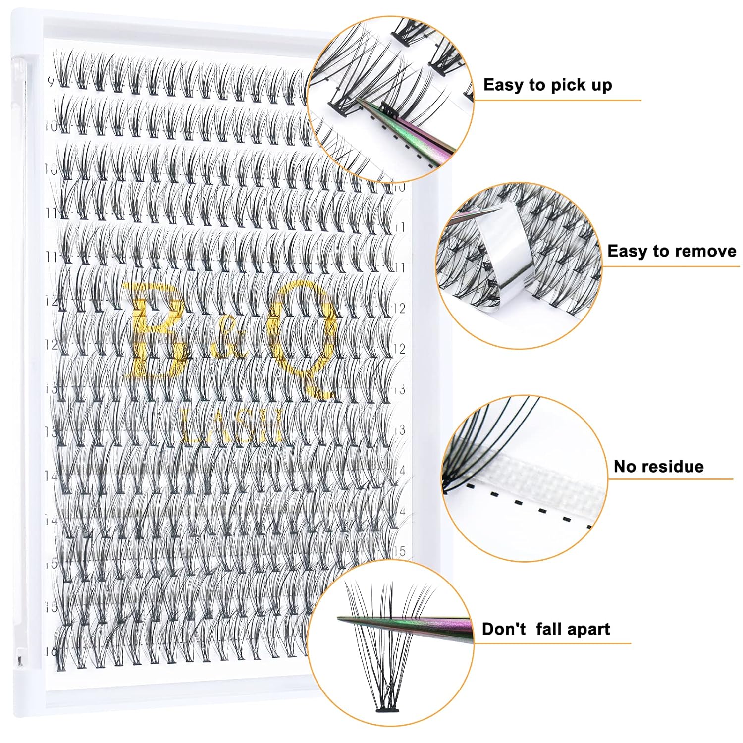 - Suitable to wear: Use a tweezer to pinch the band of cluster eyelashes and apply lash clusters below your natural lashes. You can barely feel the cluster lashes. The bottom of the clusters is flat and hardly noticeable. The lash band part will not stab your eyelid area when you blink. Bring you a perfect experience during lash application.