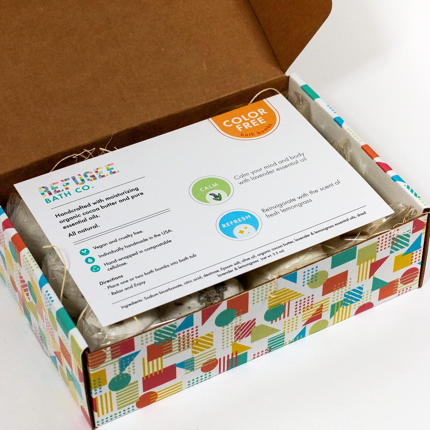 Variety Pack Bath Bombs, Color-Free Calm and Refresh Scents, 2.5 oz, Support Refugee Employment in The USA