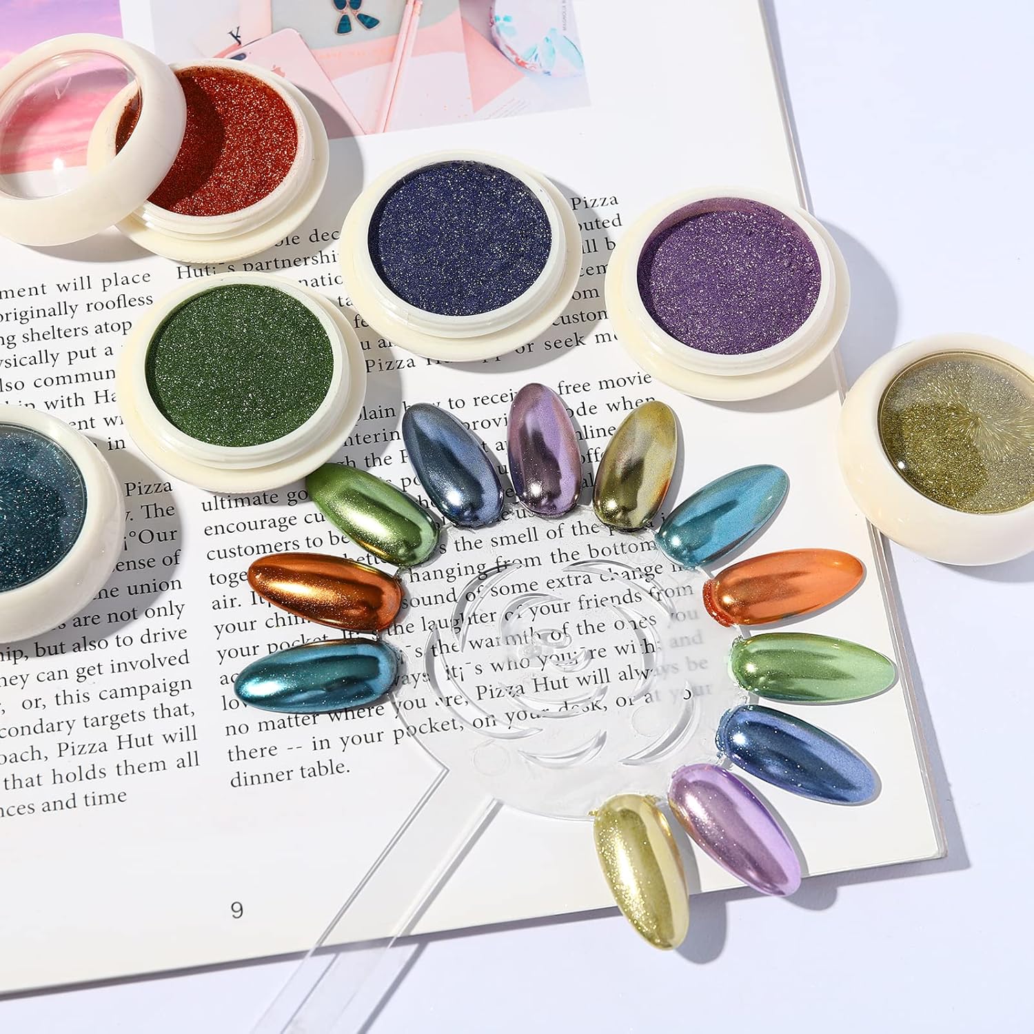- 💕Wide Application: The chameleon chrome nail powder is applied on UV gel nails, acrylic nails, natural nails, etc, also a helpful DIY tool for decorating homes, cell phone cases, glasses, body art, etc.