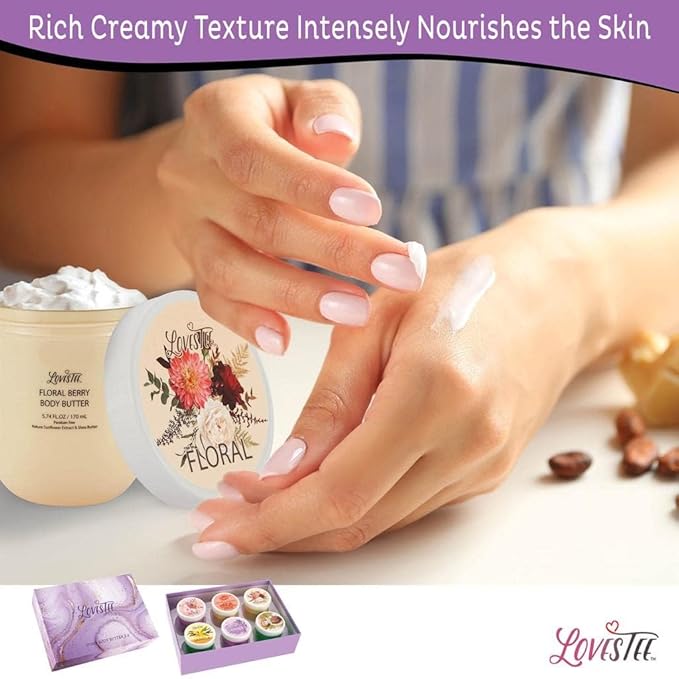 - Elegant Butter Body Lotion Gift: Includes a Variety of 6 Natural Butters, Lavender, Honey Almond, Vanilla, Rose and Coconut