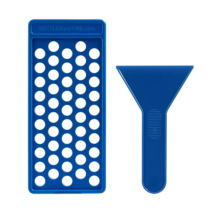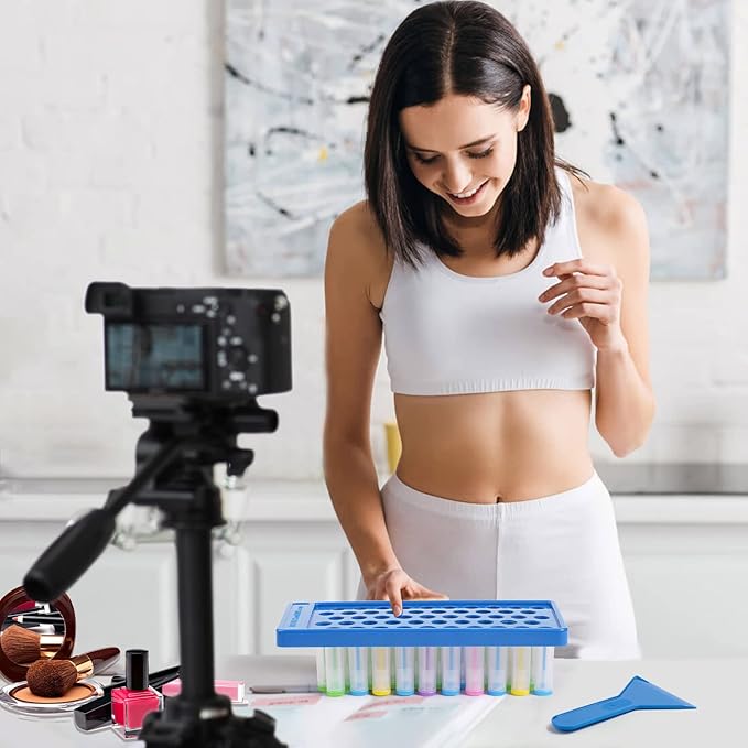 RONRONS Lip Balm Crafting Kit, Professional Lipsticks Filling Tray with 50 Small Holes and Spatula, Easy to Fill 50 Pieces Lipstick Tubes Containers for Business Gifts, Blue