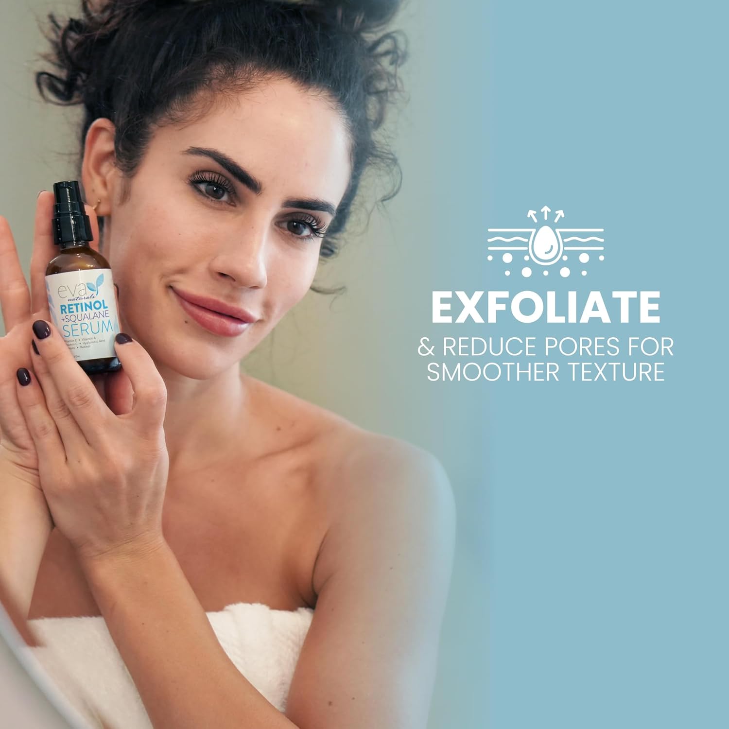 Eva Naturals Retinol + Squalane Serum – Anti Aging Face Serum for Wrinkles, Collagen Boost, Eye & Night Use – Retinoid Skin Care for Acne, Pores, Dark Spots & Sensitive Skin