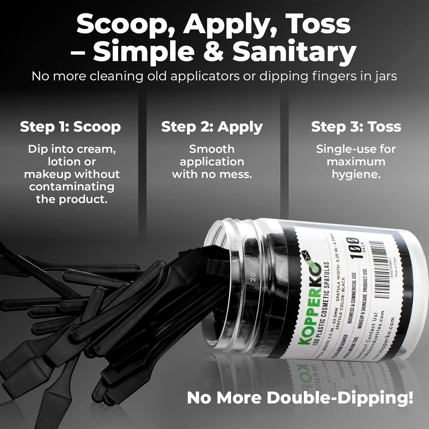 - Clean Out Your Containers: Maximize product use with our 500 pack of 0.25"x2.5" recyclable cosmetic spatulas. Easily extract creams, lotions, or makeup from containers, even in tight spaces, without getting product under your nails