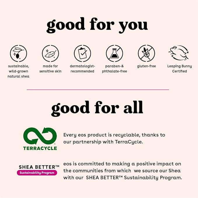 - SUSTAINABLY-SOURCED INGREDIENTS: eos lip balms have wild grown, sustainably sourced, 100% natural shea butter and oil to leave your lips smooth and nourished