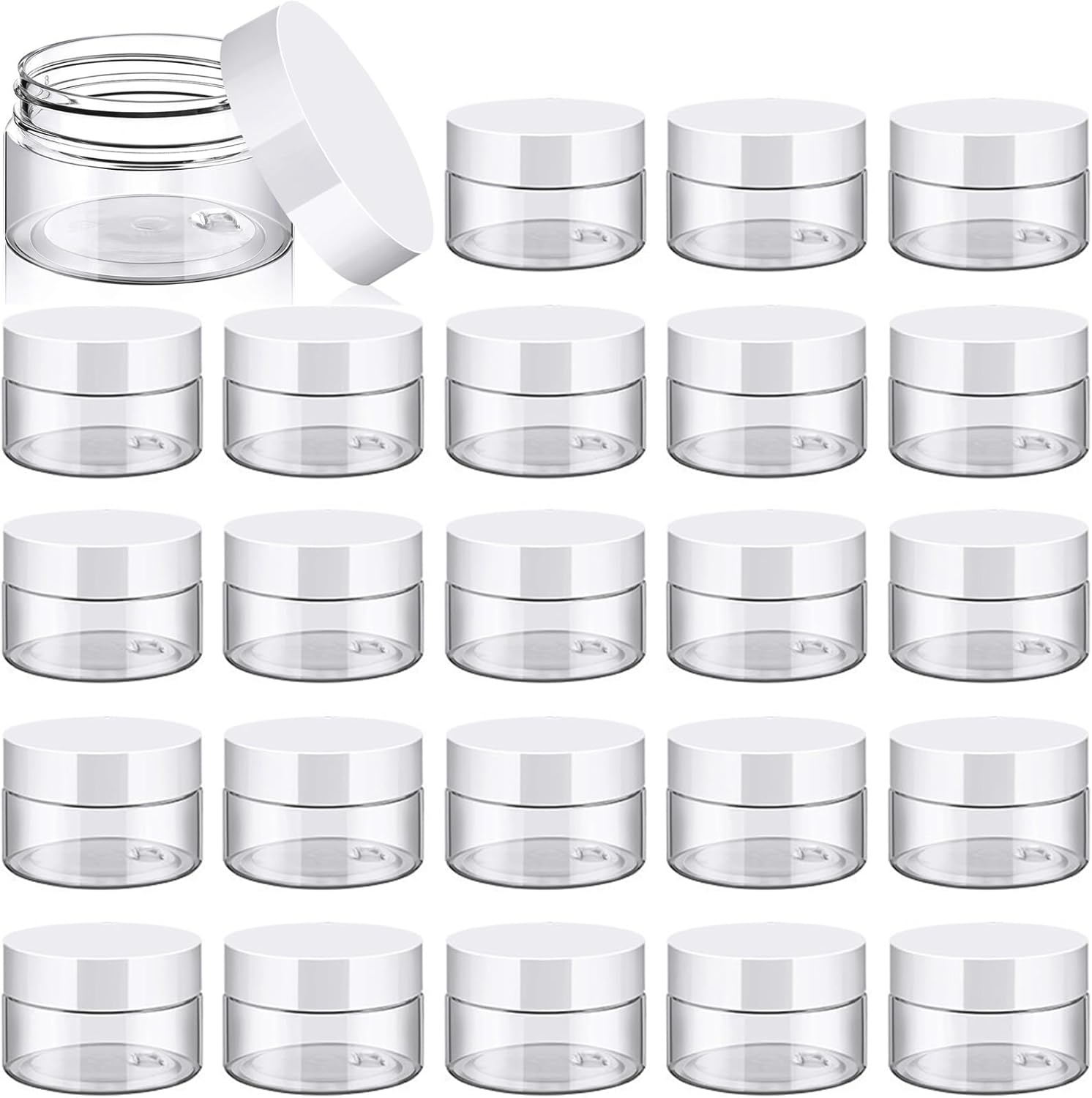 TUZAZO 24 Pack 1 Oz Small Plastic Container Jars with Lids and Labels BPA Free, Empty Round Clear Cosmetic Containers Plastic Slime Jars for Lotion, Cream, Ointments, Samples, Travel Storage (24)