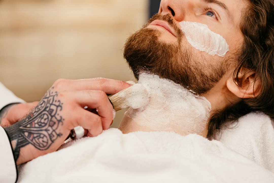 - THICK, LUXURIOUS LATHER from our mens shaving cream means a little goes a long way. With a shaving brush or your hands, whip up a rich foam that clings to skin and softens hair for a more comfortable, close shave with less tugging.