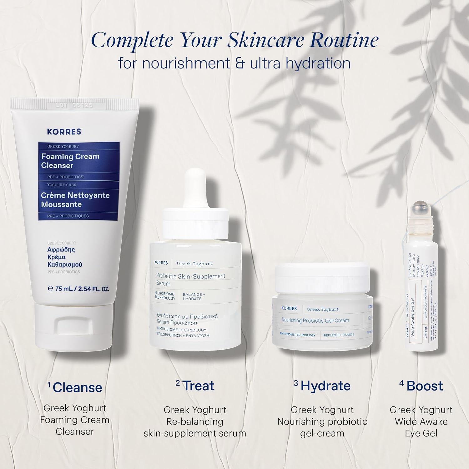 KORRES Greek Yoghurt Wide Awake Eye Gel Serum with Hyaluronic Acid and Caffeine for Dark Circles, Puffy Eyes and Under Eye Bags, Roller Massage Ball Applicator, Brightening and Hydrating, 0.51 fl oz