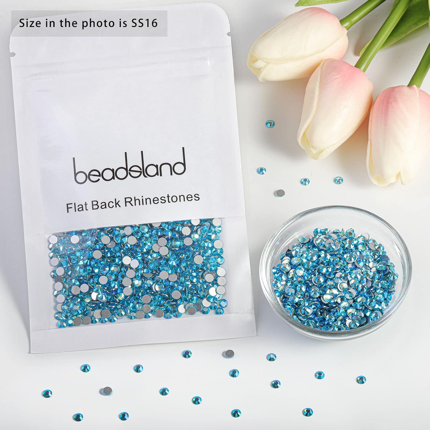 - Pack of 1440 Pieces light Blue AB Rhinestones SS16,Size 3.8-4.0mm.