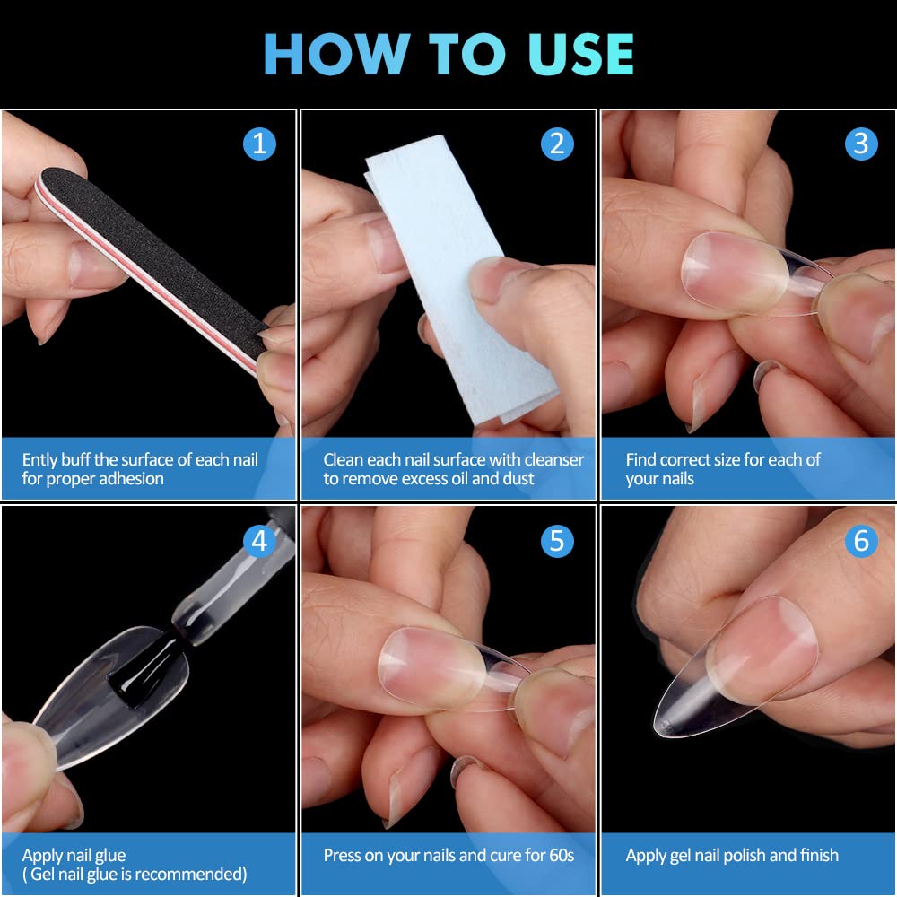 - Pre-buff & Stay Firmer: INFELING almond nail tips are no need to buff, saving much your time. The fake nails have a half of frosted surface for sticking on nails bed tightly. They contours to the nail perfectly from cuticle to free edge, convenient to press on nails beds but make your nails look natural