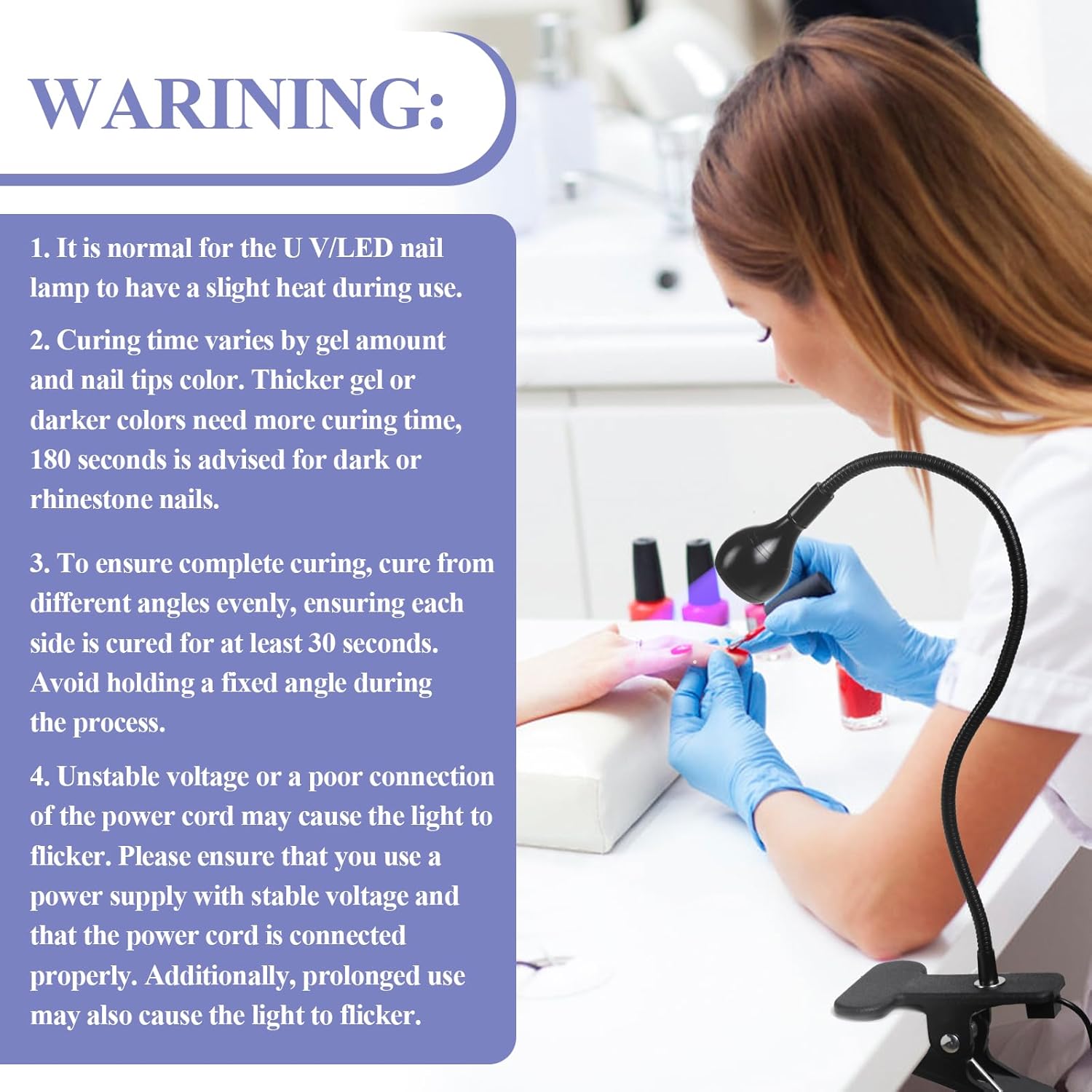 - Flexible Led Light for Nails: Saviland mini nail lamp has a flexible design and a sturdy clip. You have the flexibility to adjust the angle and height you need and don't have to worry about awkward angles since you can clamp it directly to your desk or wherever you find most convenient. Solve the difficulty of flash cure lamp, and adjust the use angle at will. The mini gel nail lamp is convenient to carry and travel. Perfect for any nail art design