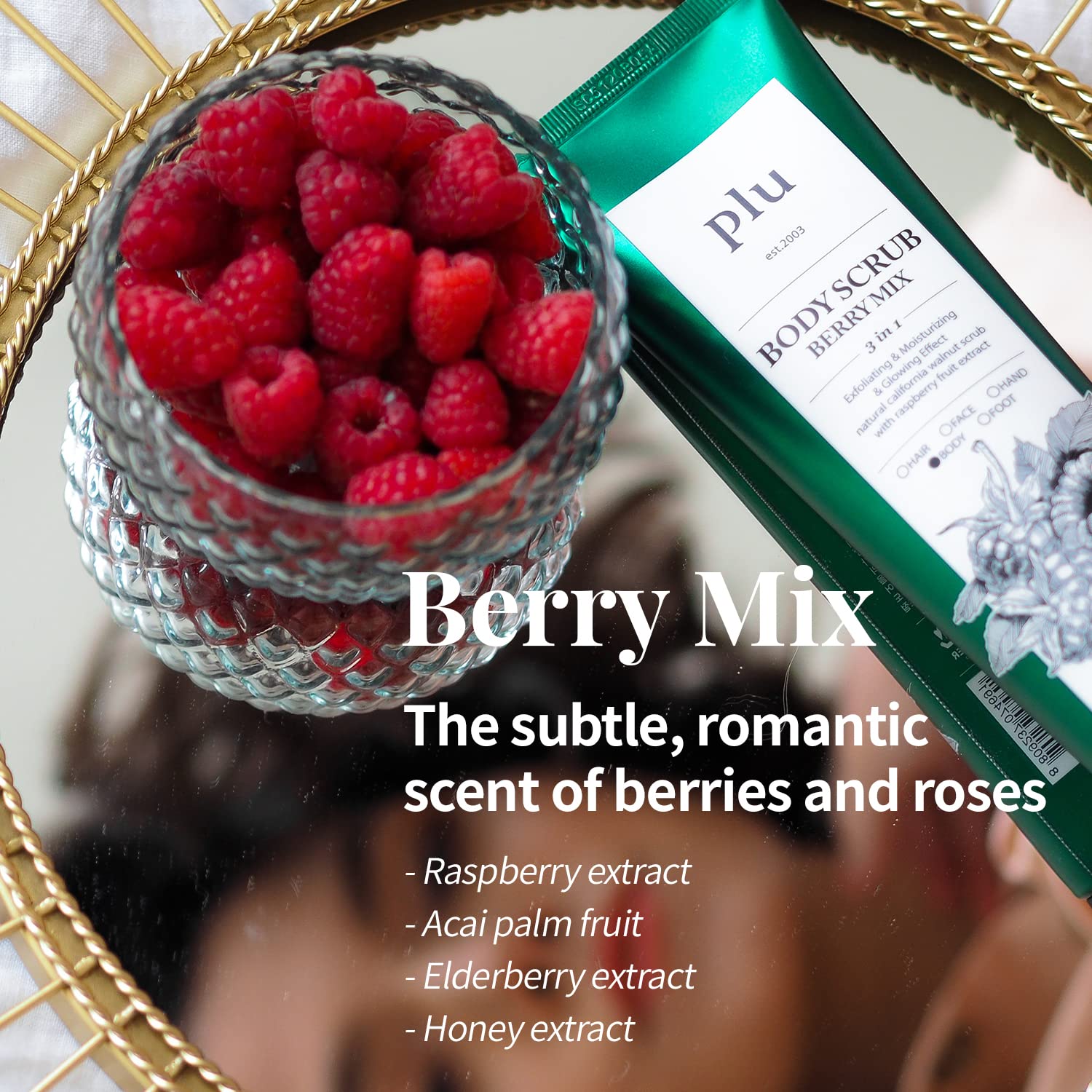 - BERRY MIX: Wake up and stay energetic with this fresh berry fragrance with raspberry and acai berry extract. Fun and fruity fragrance gently exfoliates your skin and leaves it smelling sweet and tangy all day long.