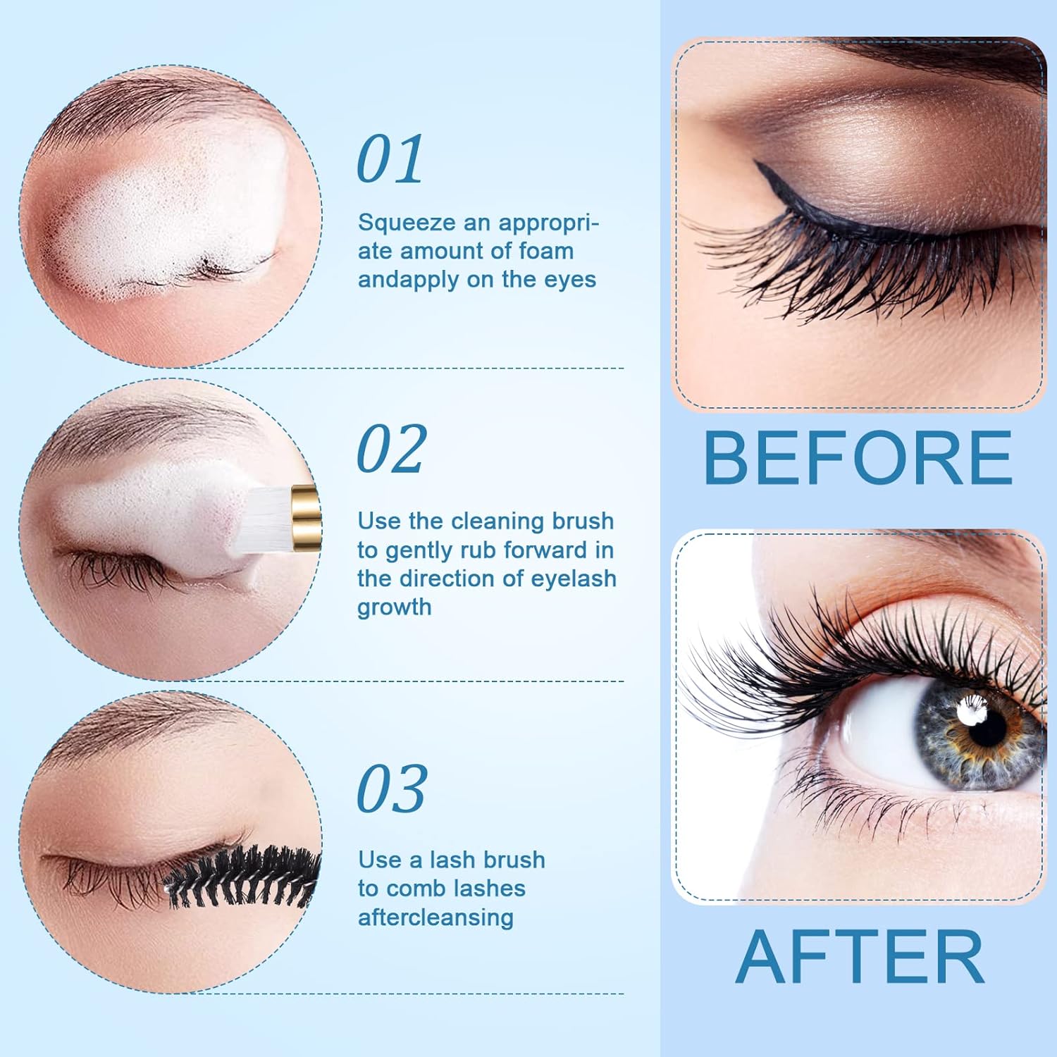 - 【Portable Eyelash Shampoo Bottles】These about 60ml foam pump bottles are made of PET material, and the spring-loaded button ensures that there is enough liquid to spray into a foam. You can make your own lash cleanser as a gift to a new client's lash extension cleanser. It is also the perfect container for trips, excursions, trips.