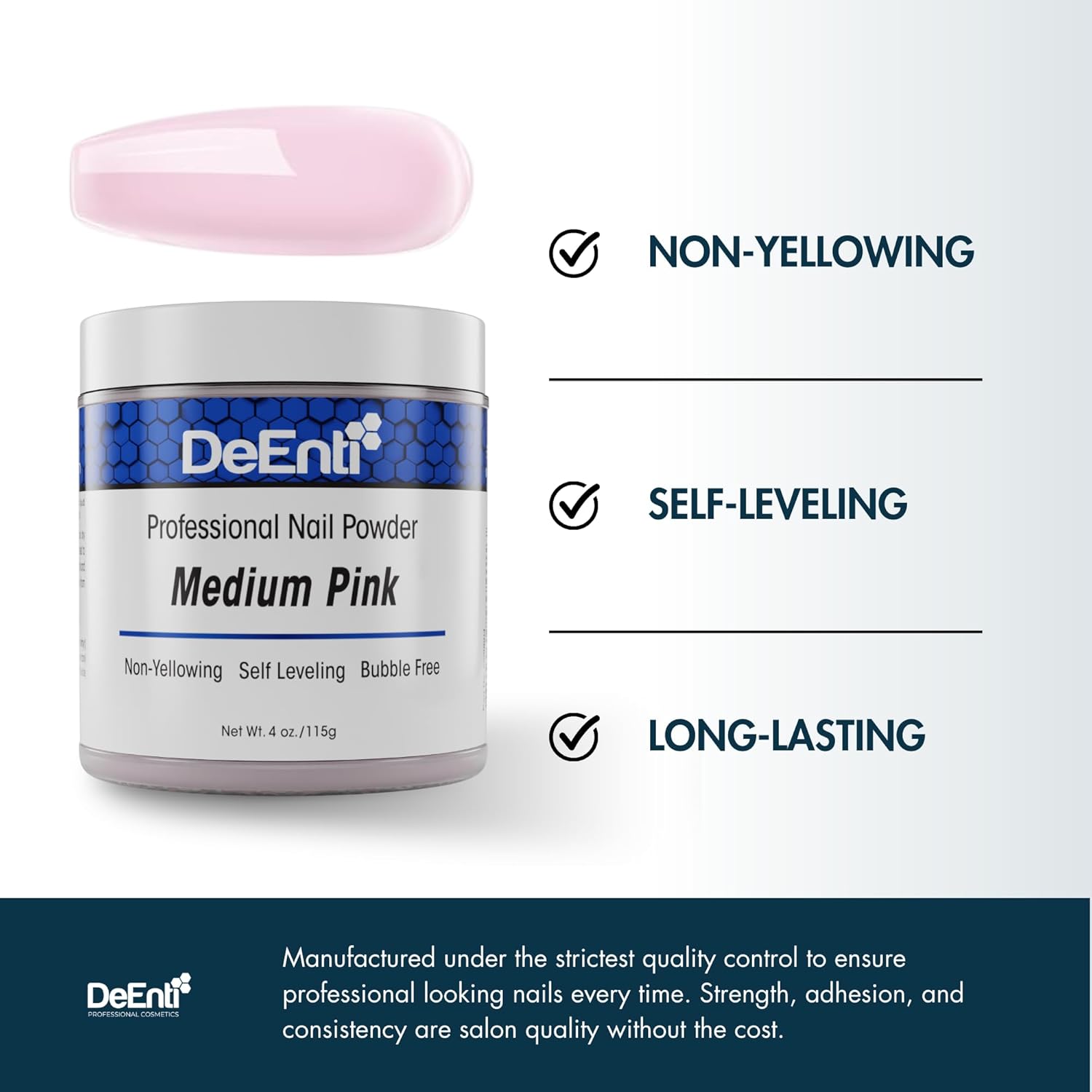 - PROFESSIONAL QUALITY NAIL POWDER polymer Medium Pink is pink in color with a standard set speed. Perfect for at home manicures, nail painting and gel polish, our gel powder dip is long-lasting, chip resistant and a perfect addition to your acrylic nail dip kit.